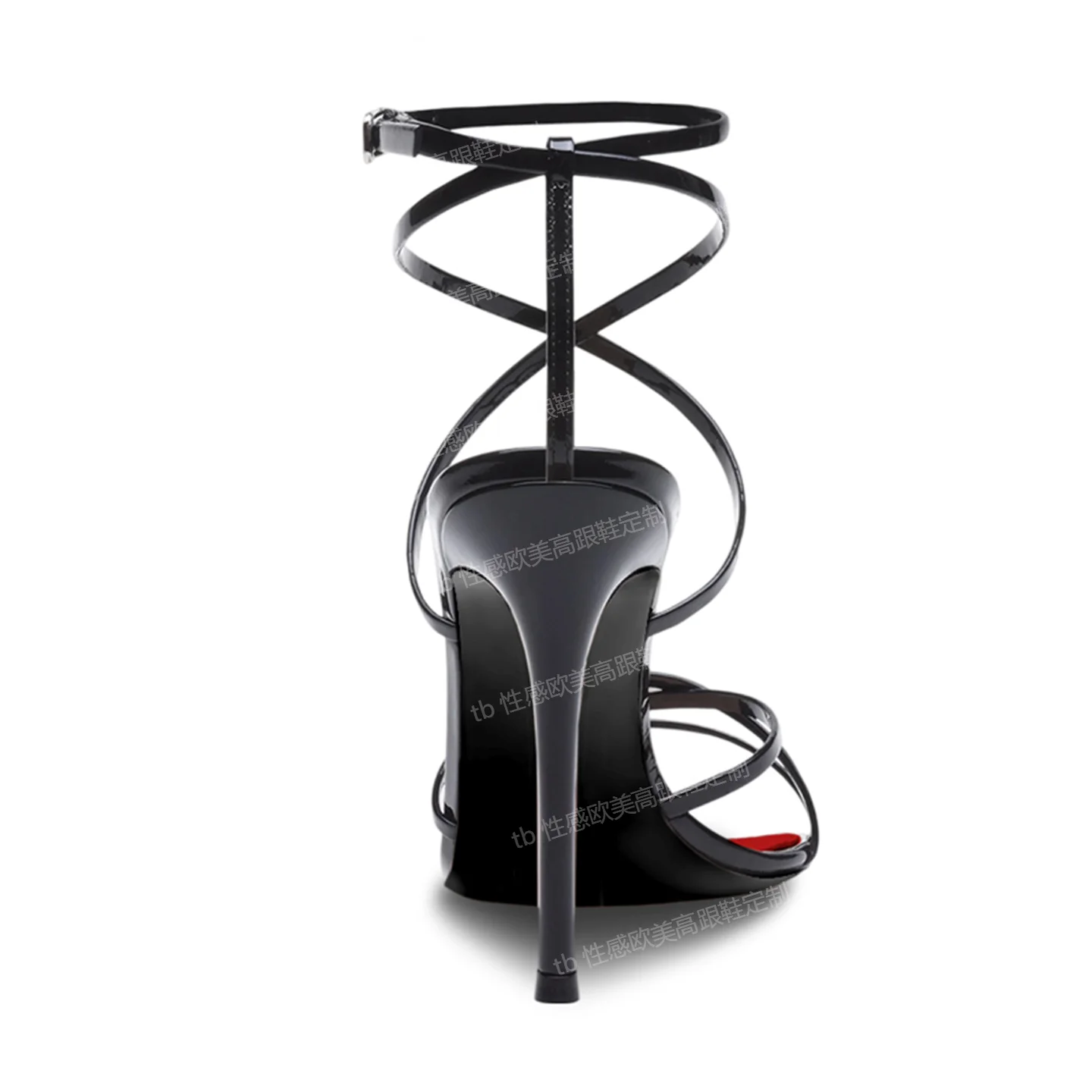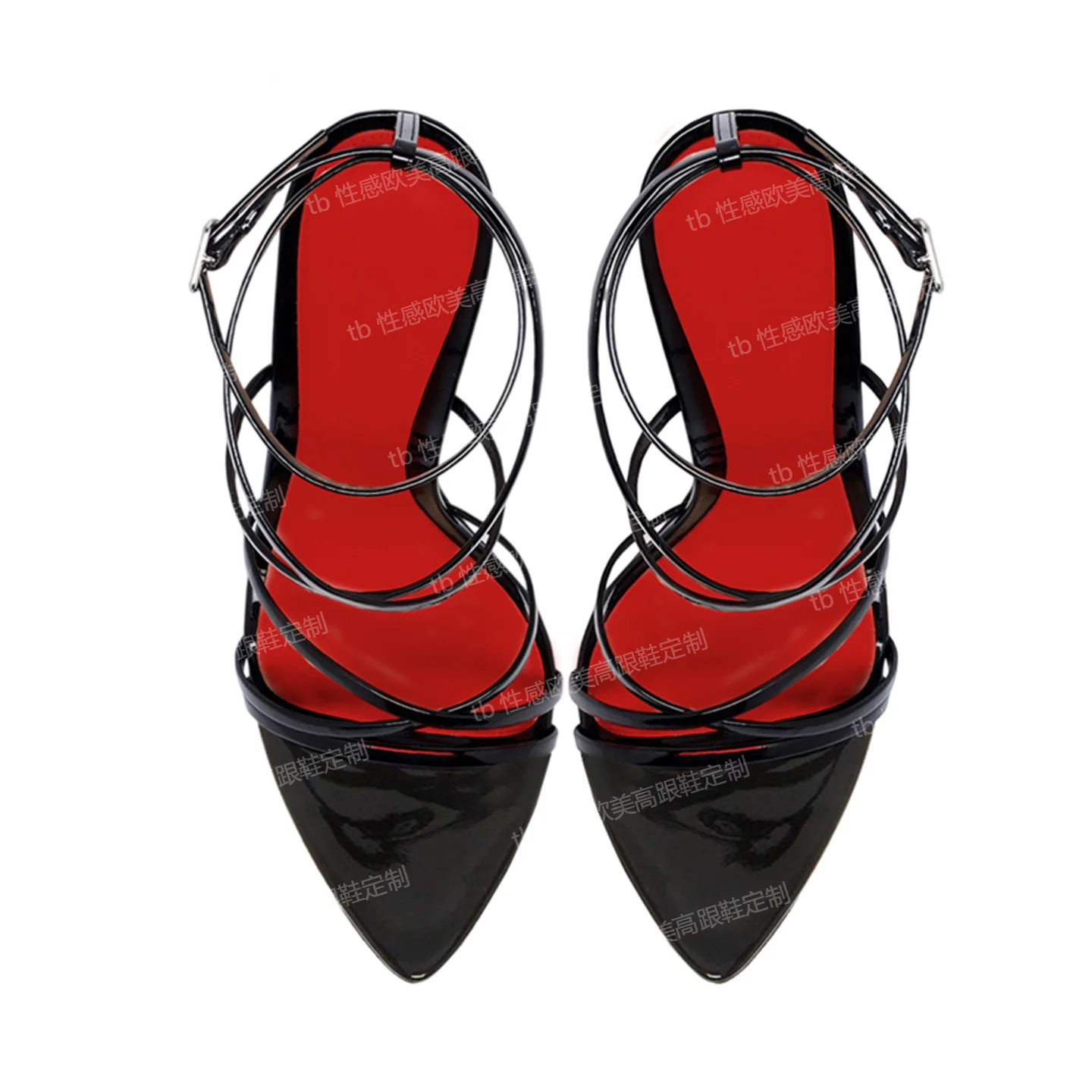 Sandales noires à bout pointu de 12cm, avec boucle droite et talons hauts à lanières croisées, nouvelle collection été européenne et américaine |