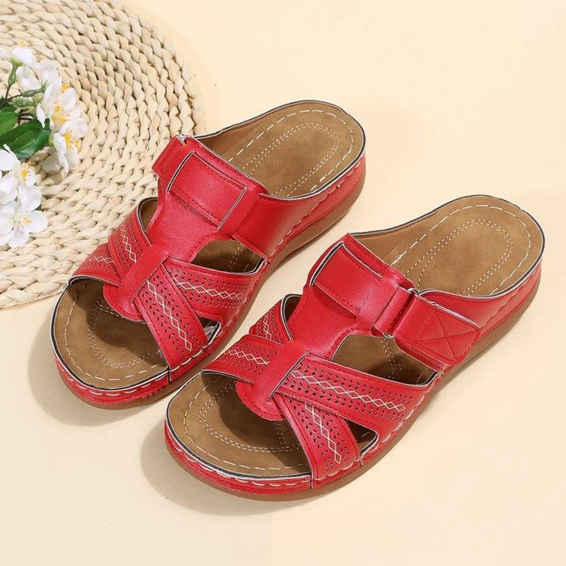 Sandales orthopédiques à talons compensés pour femmes, chaussures rétro à bout ouvert, Vintage, antidérapantes, en cuir, décontractées, à plateforme, été, 2024