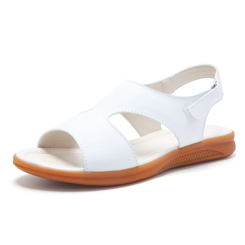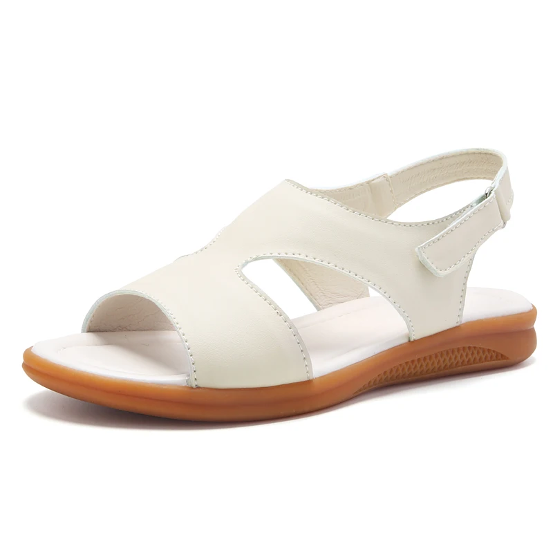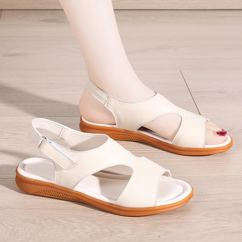 Sandales plates d'été pour femmes, nouveau style, chaussures pour femmes décontractées et à la mode, 100% cuir véritable, semelle souple antidérapante |