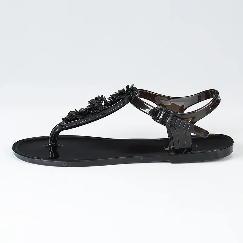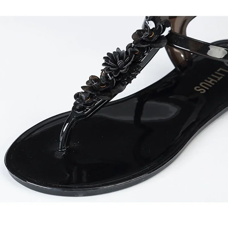 Sandales plates en gelée pour femmes, confort d'eau, plage d'été, tongs florales pour dames, diapositives à sangle en T |