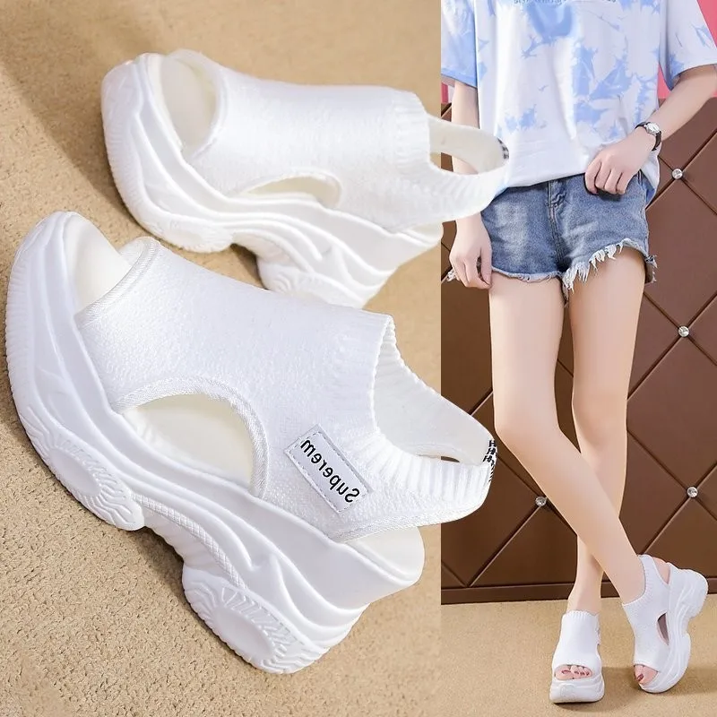 Sandales pour femmes 2022 été talon compensé tissu élastique couverture pied dames sandales à semelles épaisses mode bagatelle élévation chaussures décontractées |