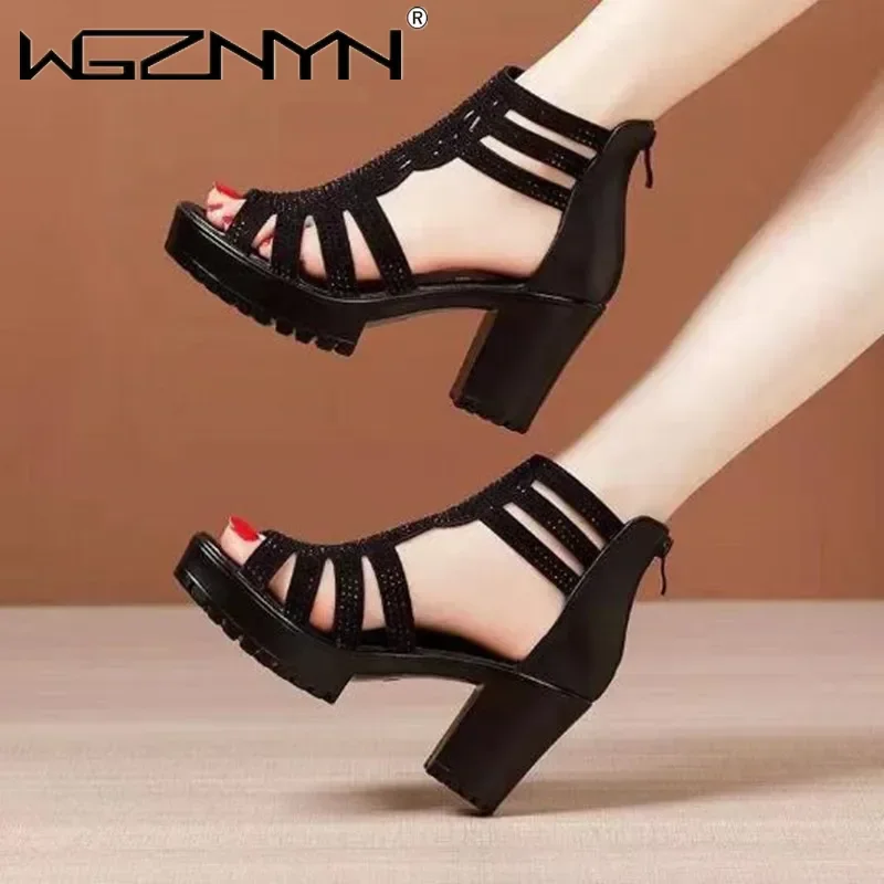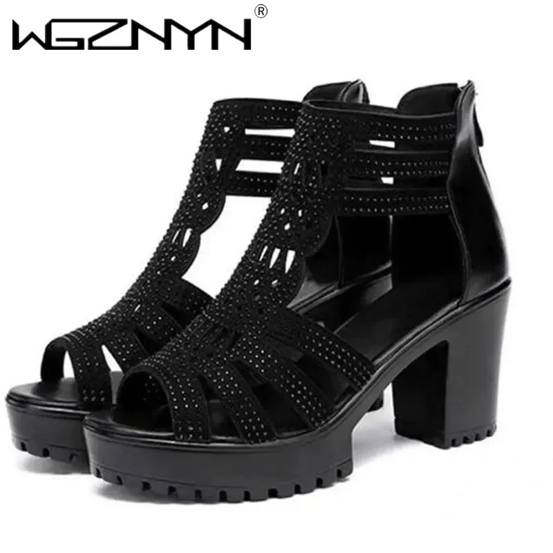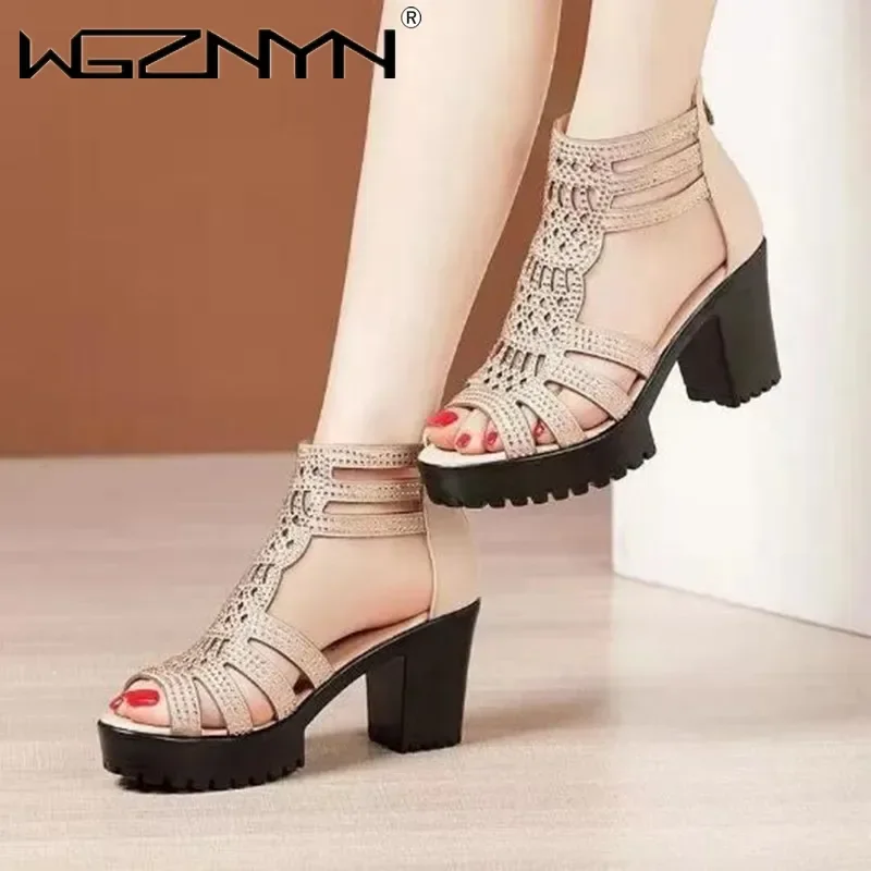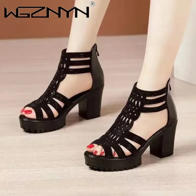 Sandales Romaines à Talons Hauts pour Femme, Chaussures d'Été Élégantes Ajourées, 2025 |