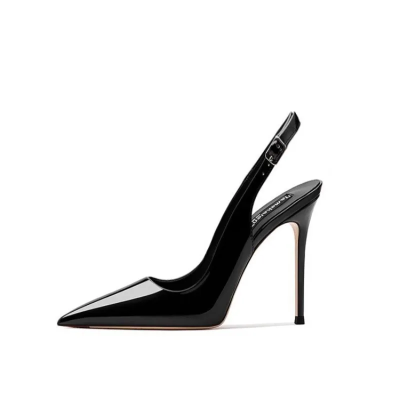 Sandales sexy à talons hauts avec pointes pointues et élégantes chaussures d'été à lanières en cuir verni à la mode pour femmes de fête 2025 |