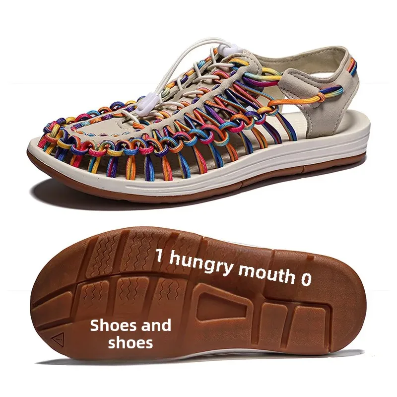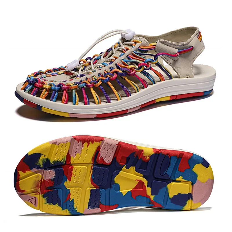 Sandales tissées colorées d’été, chaussures de plage à tête pour Couple, chaussures de voyage pour femmes, respirantes, Version améliorée, nouvelle collection