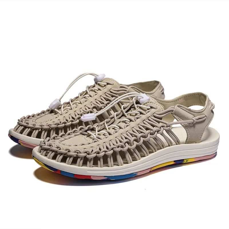 Sandales tissées colorées d'été, chaussures de plage à tête pour Couple, chaussures de voyage pour femmes, respirantes, Version améliorée, nouvelle collection |