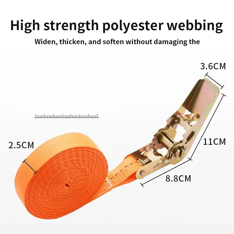 Sangles de chargement d'arrimage à boucle métallique robuste pour voiture et camion-ceinture à cliquet solide pour un transport sécurisé des bagages et du fret |