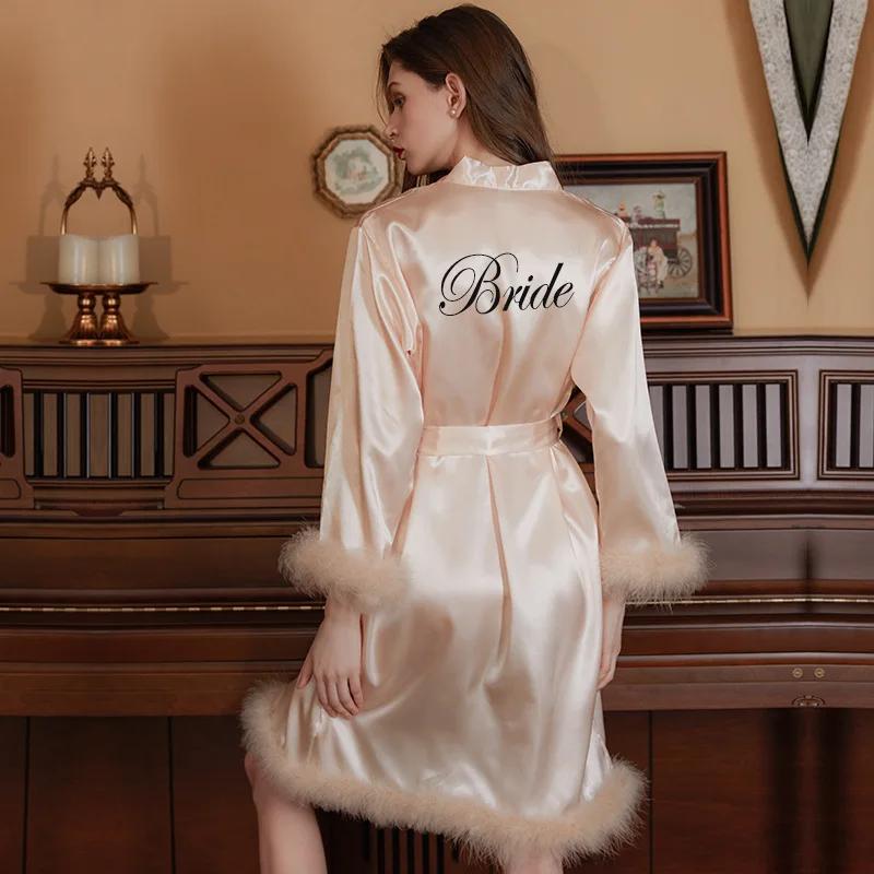 Satin plume Patchwork mariée Robe de demoiselle d'honneur Sexy Kimono peignoir Robe décontracté vêtements de nuit Lingerie intime femme chemise de nuit |