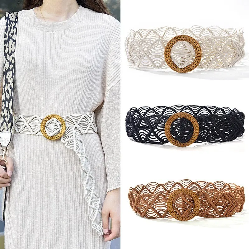 Sceau de taille tissé à la main de style ethnique pour femmes, ceinture rétro, ULd’avertissement, joint de taille extra large, jumelé à une jupe, ceinture de manteau, mode