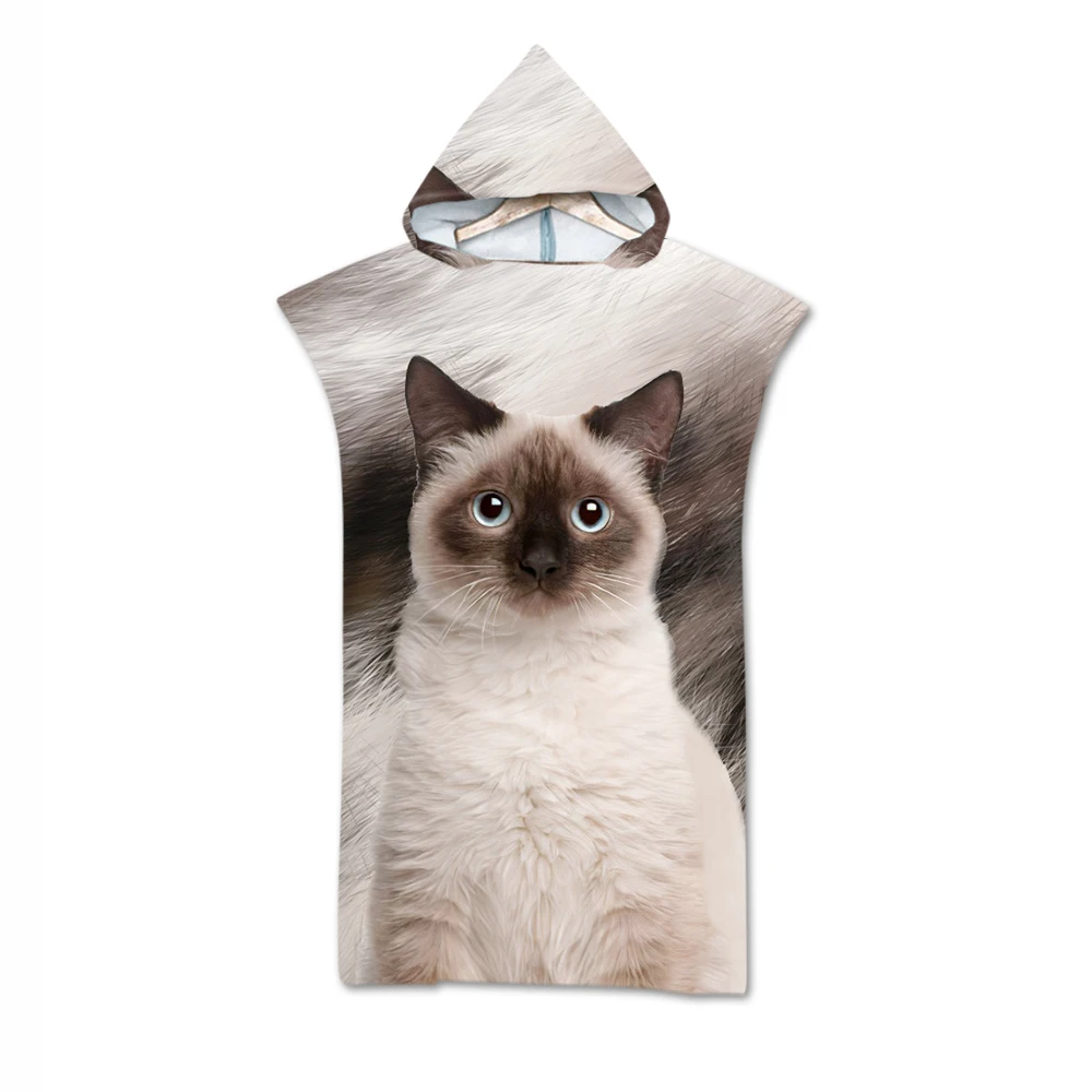 Serviette poncho à capuche pour adultes et enfants, chat mignon chaton, sauna, spa, surf, natation, robe à langer de plage, vente en gros, cadeau de livraison directe