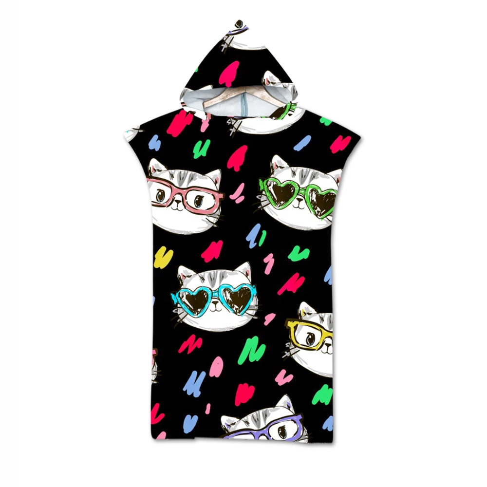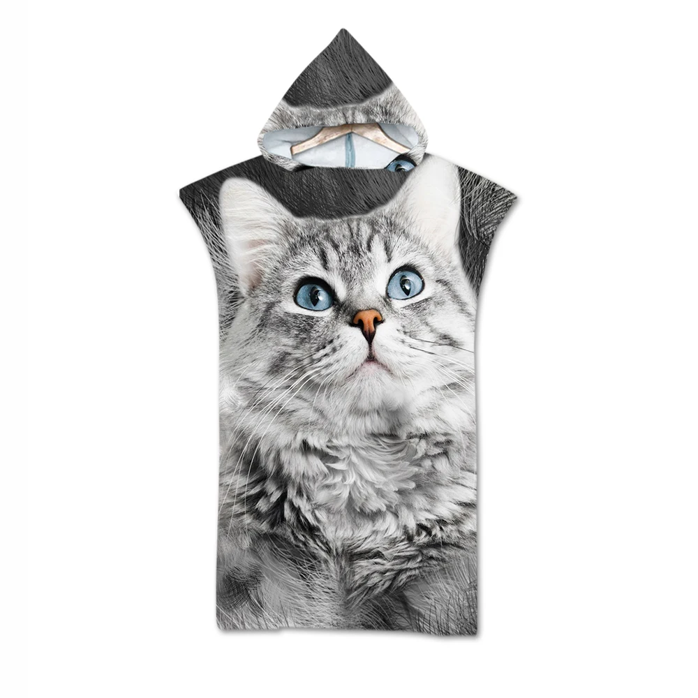 Serviette poncho à capuche pour adultes et enfants, chat mignon chaton, sauna, spa, surf, natation, robe à langer de plage, vente en gros, cadeau de livraison directe |