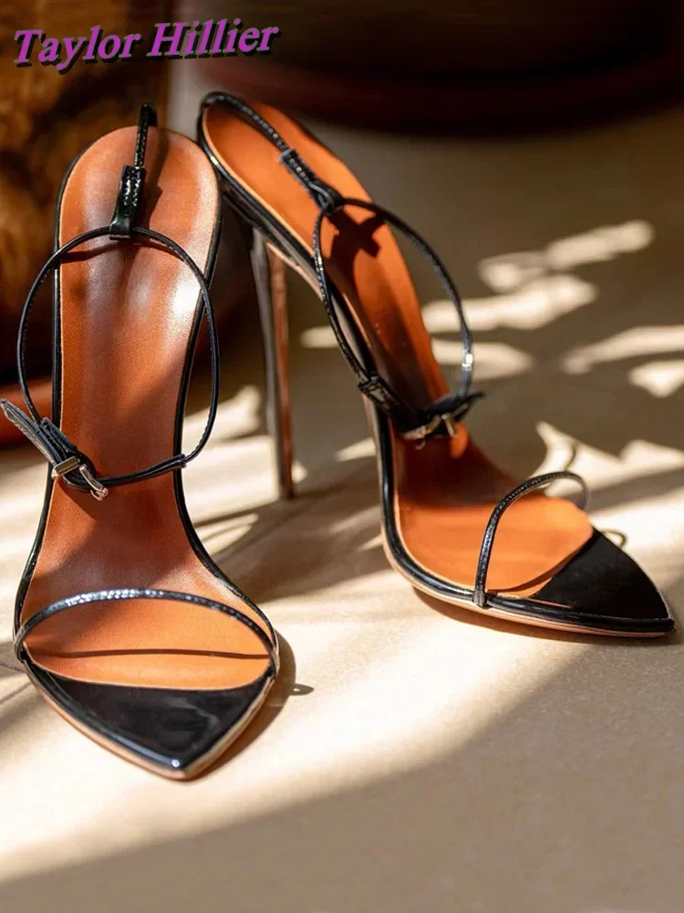 Sexy noir femmes sandales bout ouvert bande étroite talons Stiletto concepteur cheville boucle sangle femmes vêtements d’extérieur chaussures Zapatos Para Muje
