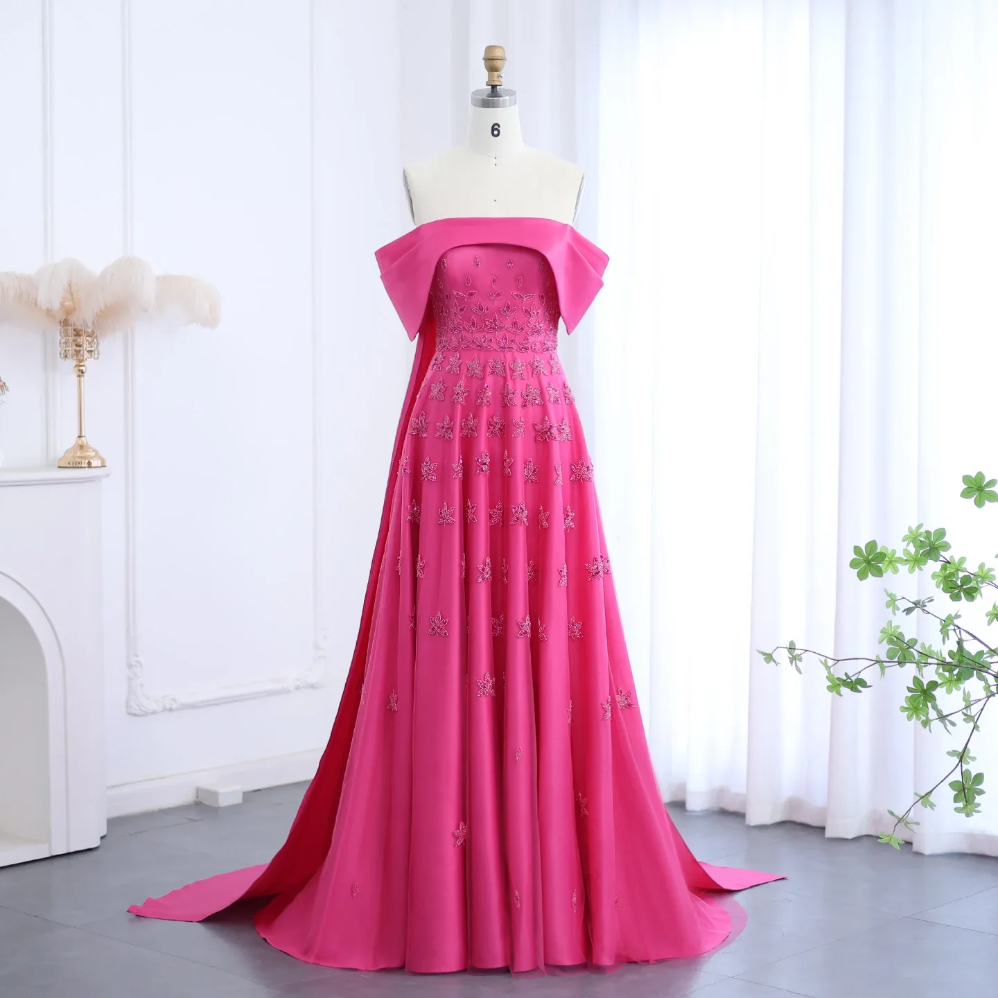 Sharon Said – robe de soirée de luxe en Satin arabe jaune, dubaï, avec Cape, traîne, épaules dénudées, pour femmes, invité de mariage, personnalisée, SS455 |