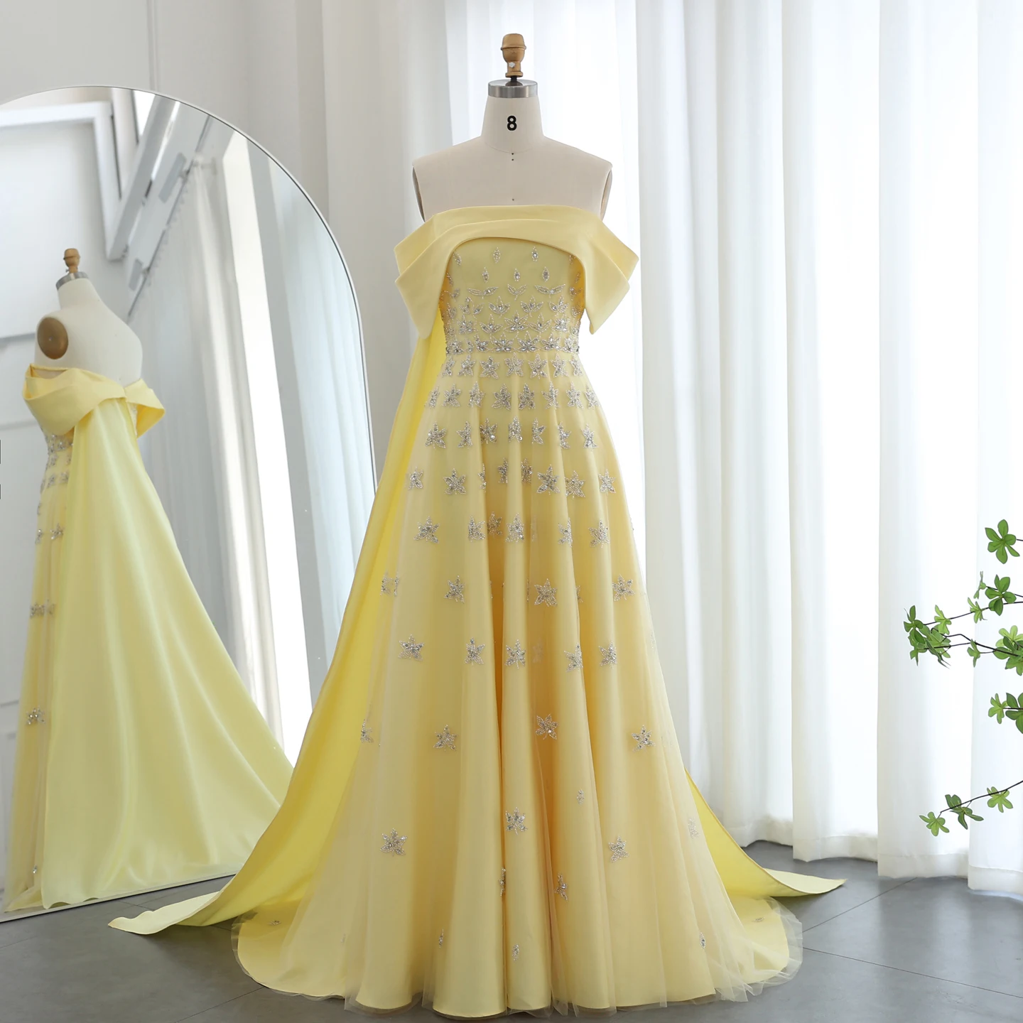 Sharon Said-Robe de Soirée en Satin Jaune pour Femme Arabe, Luxe, Dubaï, avec Cape Off, Initiée pour ixde Mariage, Tout ce que SS455 Personnalisé