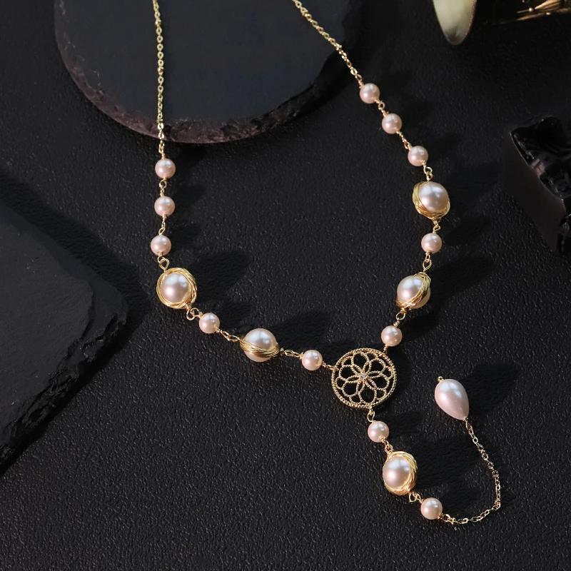 Shijia collier de perles plaqué or 18 carats Design collier fait à la main bijoux pour femmes GN0260-2Shijia collier de perles plaqué or 18 carats Design collier fait à la main bijoux pour femmes GN0260-2