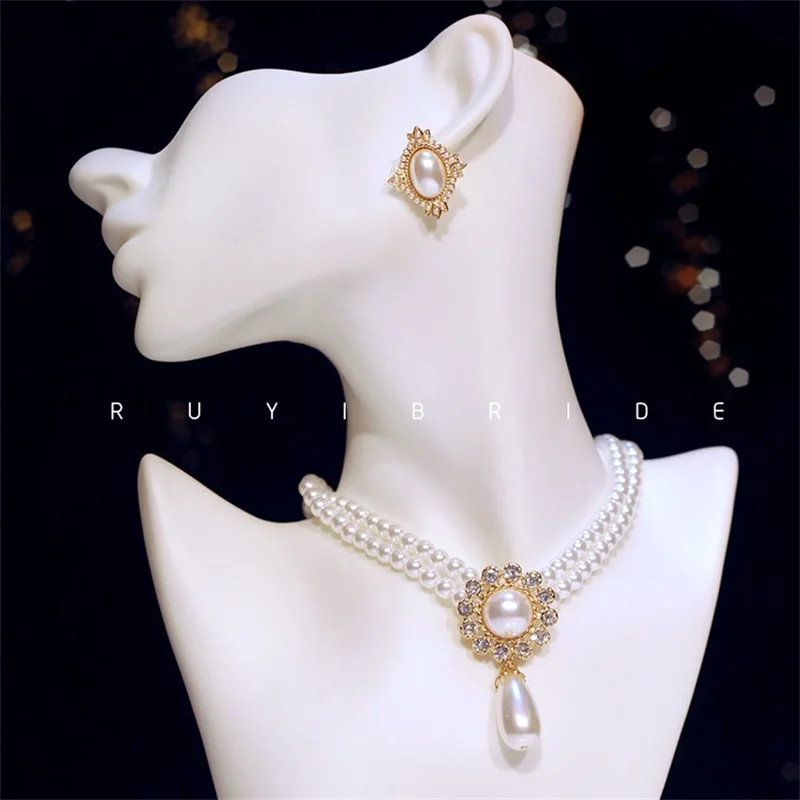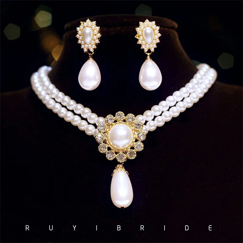 SHMIK élégant Vintage palais plein perle pendentif collier chaînes boucles d’oreilles pour femmes dame classique exquis Chorker chaînes bijoux