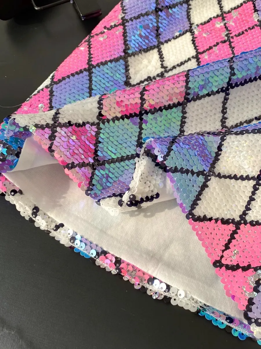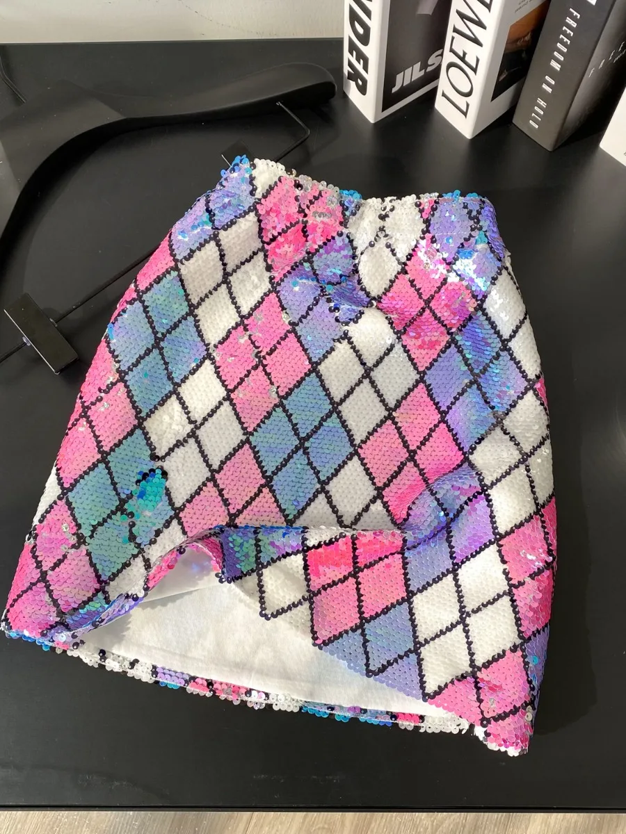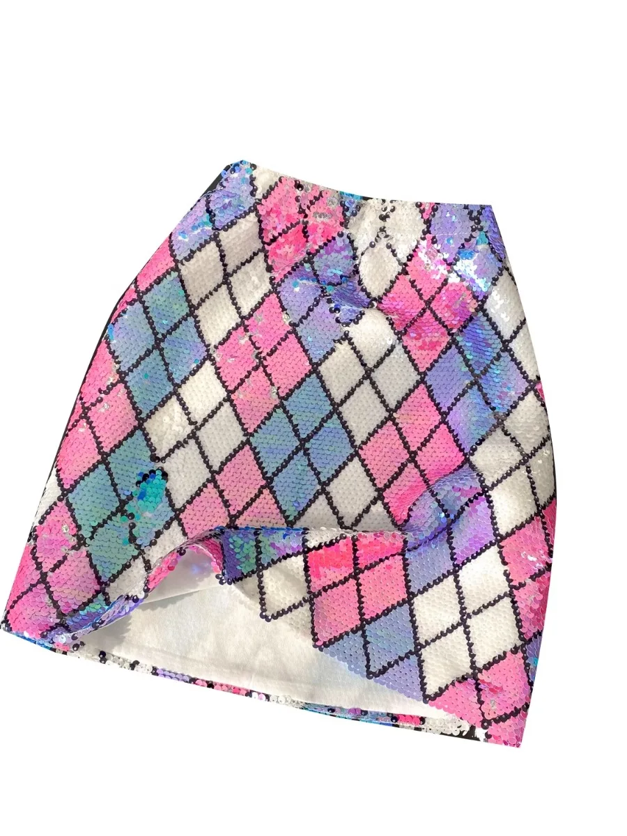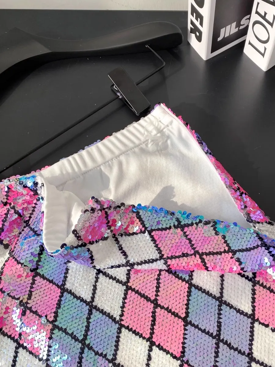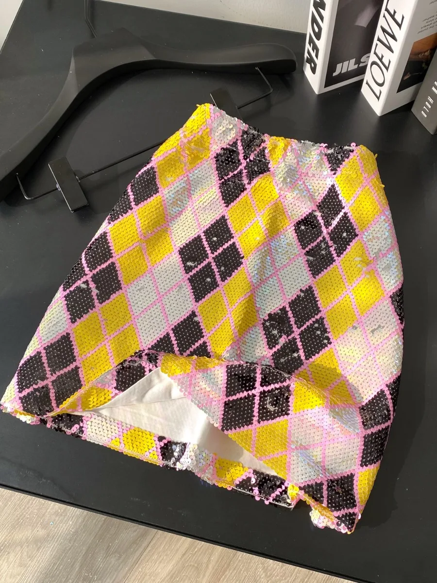 Keywords: Colorful Argyle Shorts, Sequin Loose, Party Club, Edgy Hot Pants