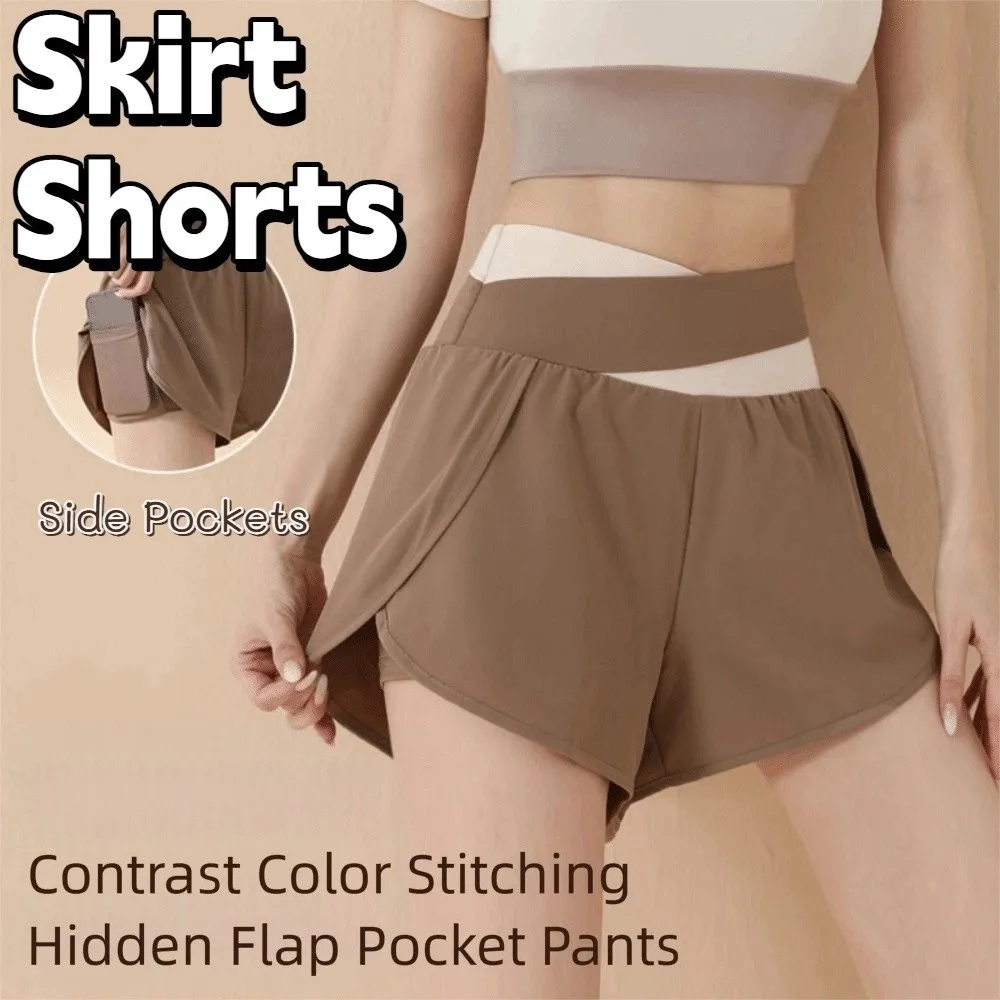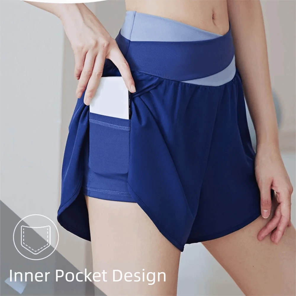 Short de sport respirant 2 en 1 pour femmes, doublure intérieure, taille haute, short d’entraînement, poches latérales antidérapantes pour téléphone