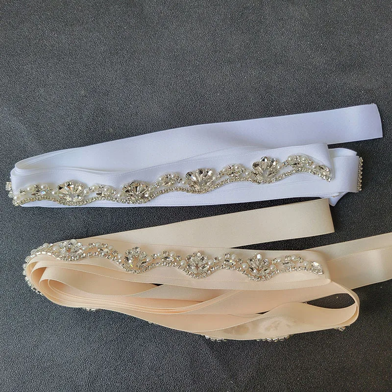 SLBRIDAL-Ceinture de Mariage en Satin avec Strass pour Femme, Accessoires de Robe de Bal de Soirée, Ruban pour Patients, Demoiselles d'Honneur |