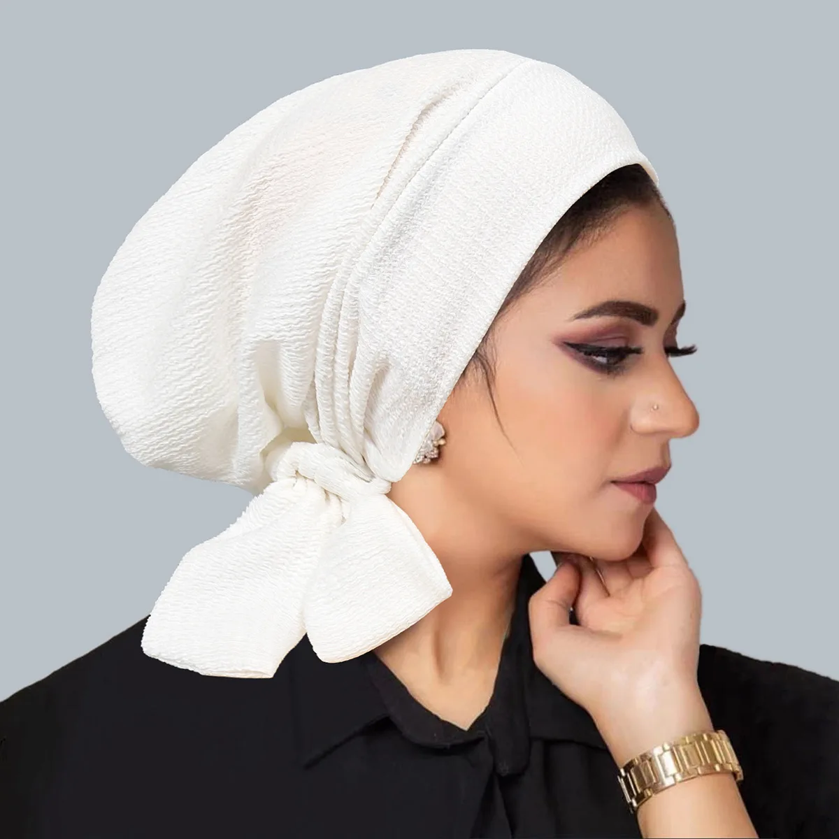 Solid Color Crinkle Turban Hijab Hats Long Tail Head Wraps Elastic Muslim Hats Breathable Chemo Cap for Women Girls |