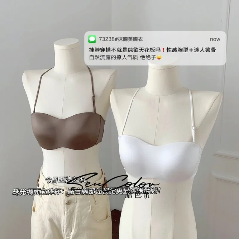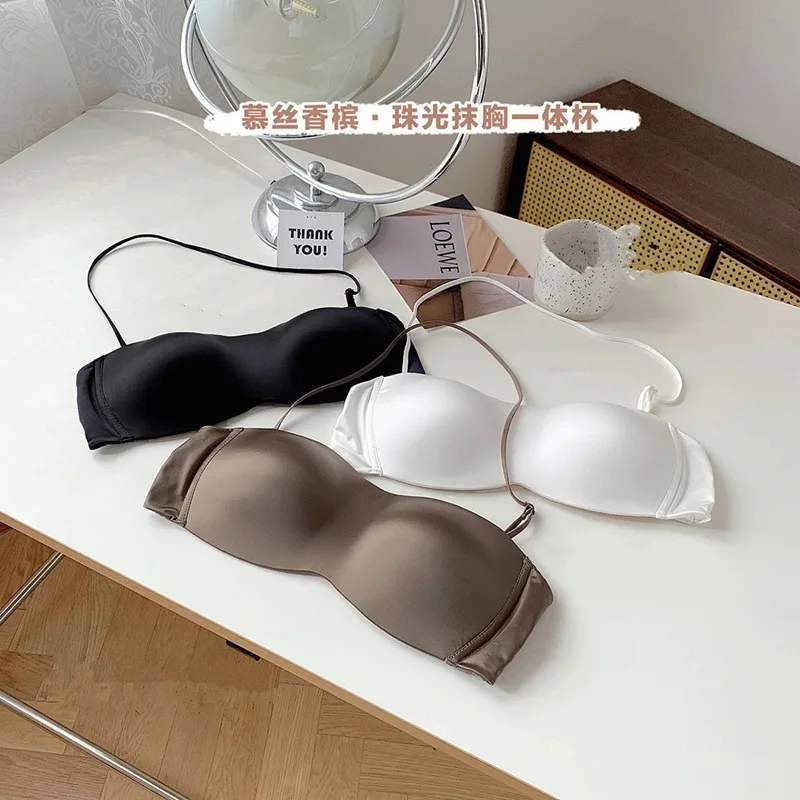 Soutien-gorge convertible en satin de qualité supérieure, style japonais, sans bretelles, col licou, vêtements polyvalents, lingerie confortable sans couture pour femmes CA S-XL MOYISU |