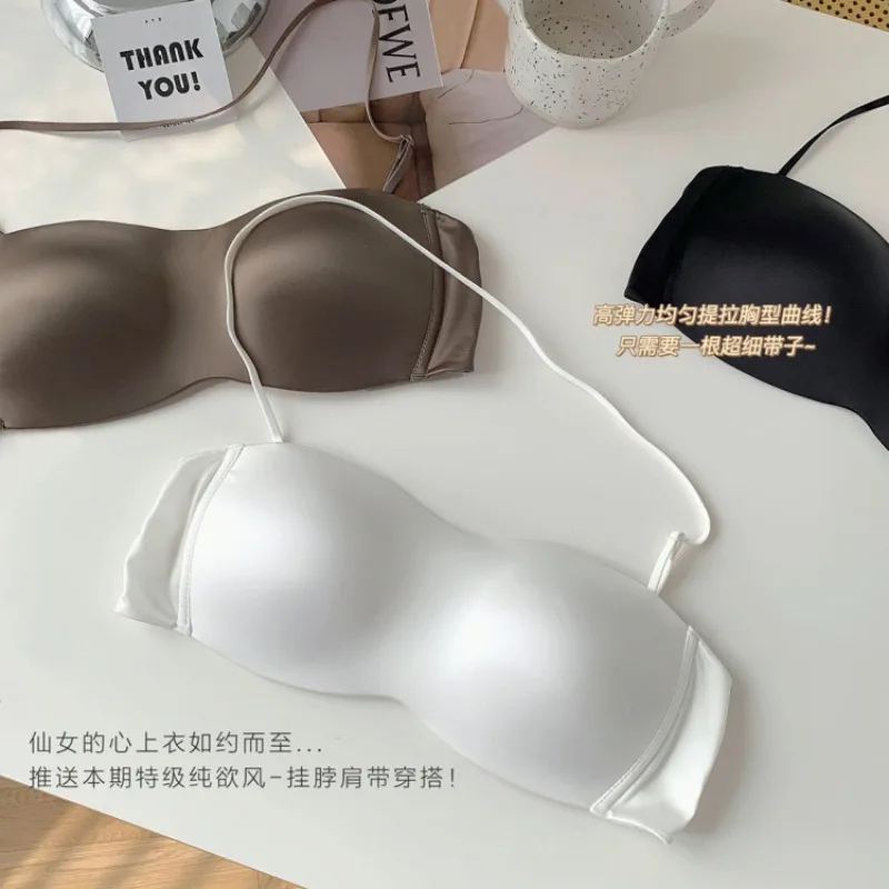 Soutien-gorge convertible en satin de qualité supérieure, style japonais, sans bretelles, col licou, vêtements polyvalents, lingerie confortable sans couture pour femmes CA S-XL MOYISU