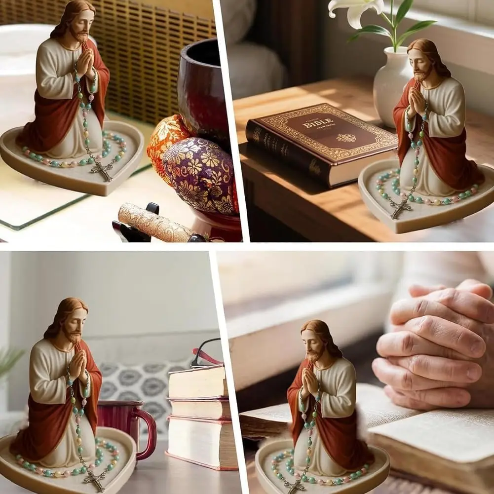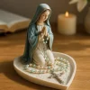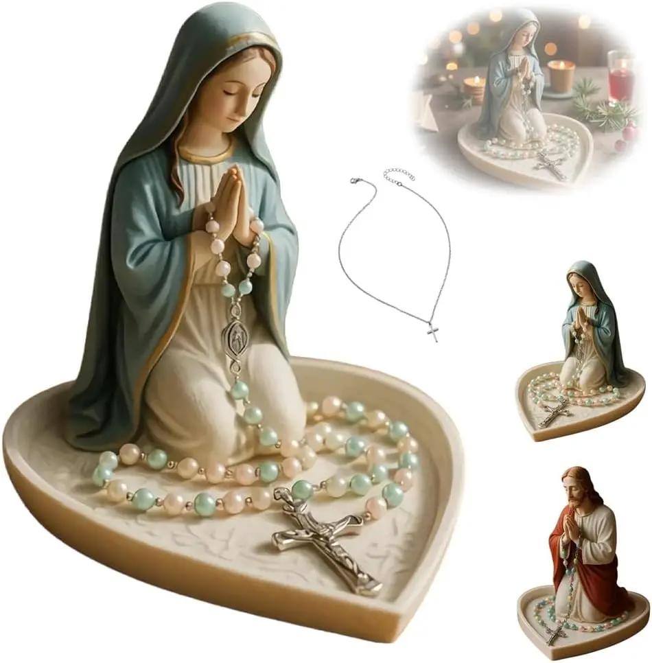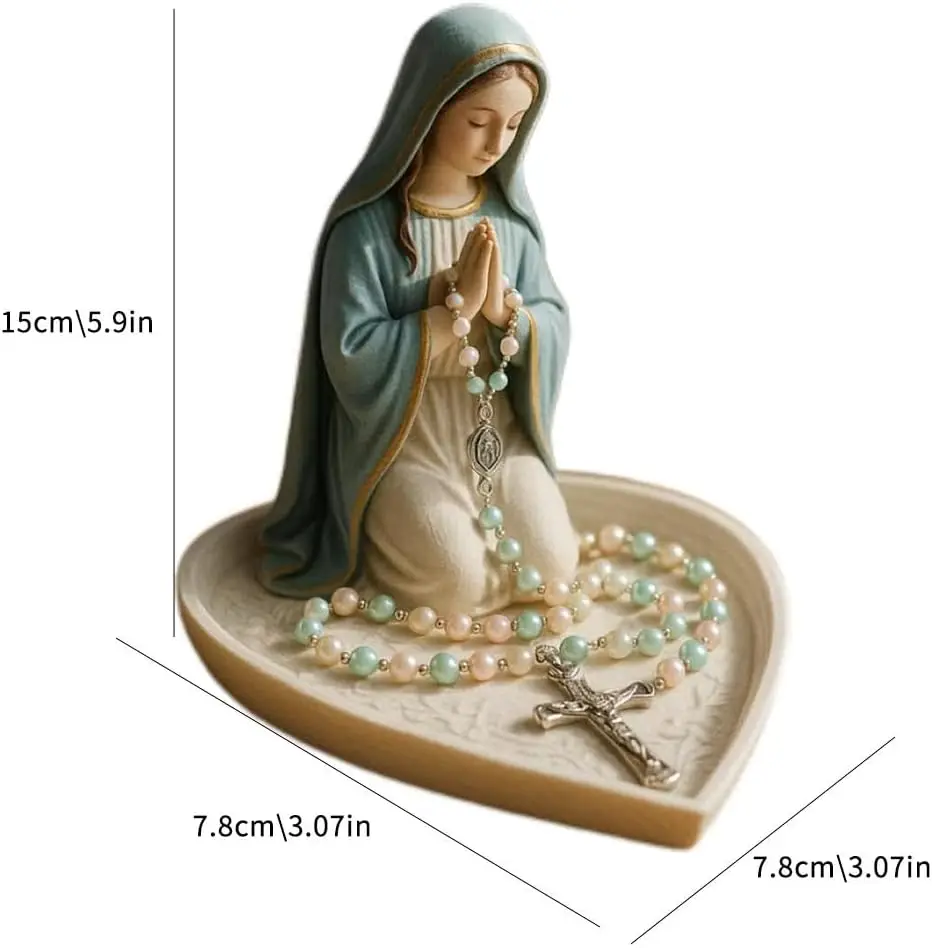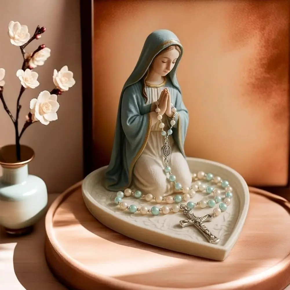 Statue de notre-dame de grâce, porte- chapelet brillant de la vierge marie, porte-bijoux de chapelet de table, décoration de maison catholique sacrée pour commode |