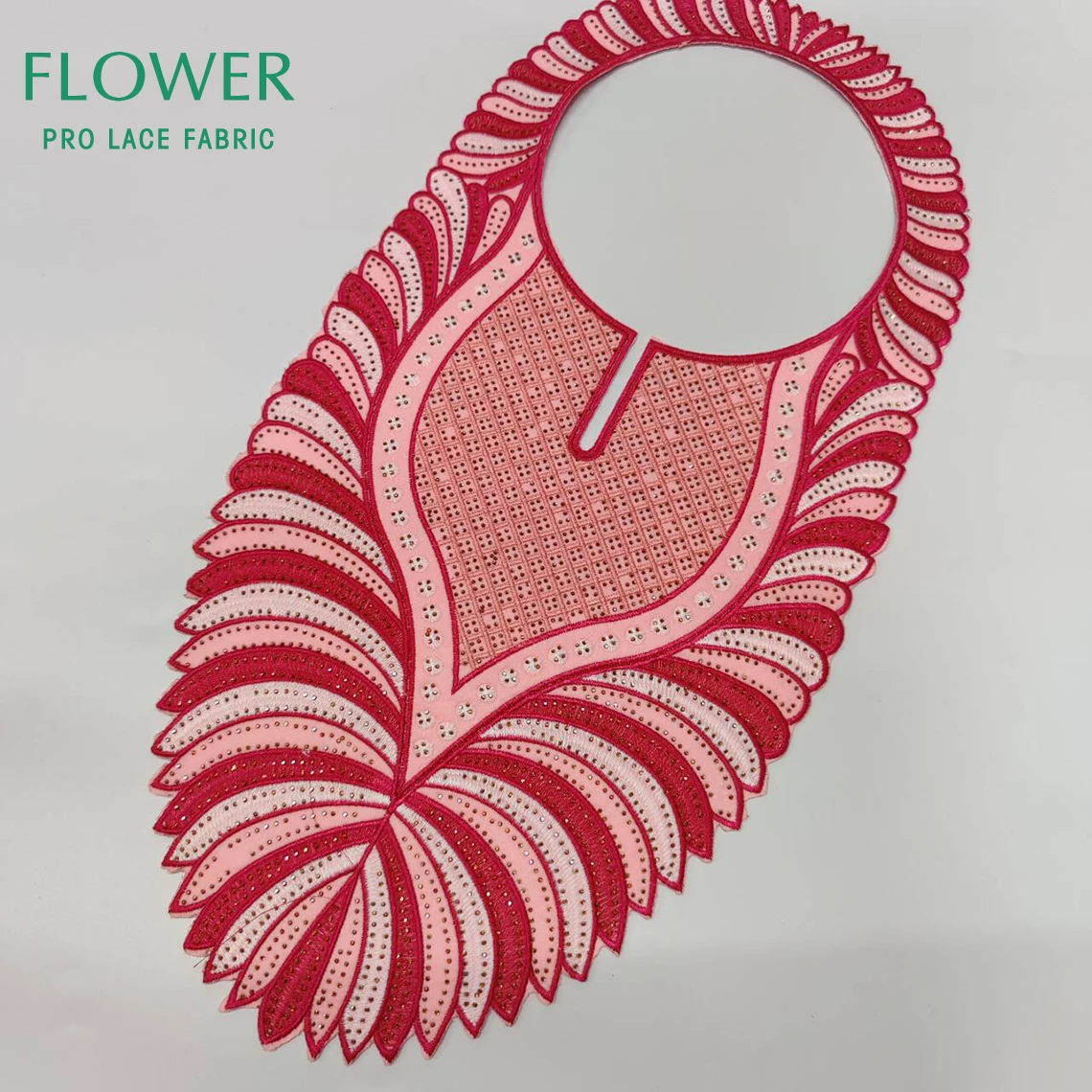 Strass africain décolleté Guipure broderie rose nigérian femmes mariée robe de mariée bricolage accessoires |