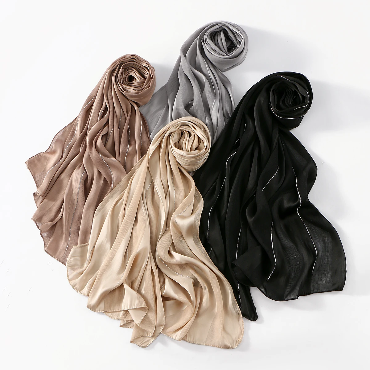 Strass froissé mousseline de soie Hijab écharpe pour femme musulman Hijabs Satin fil écharpe été respirant musulman écharpe pour Ramadan |