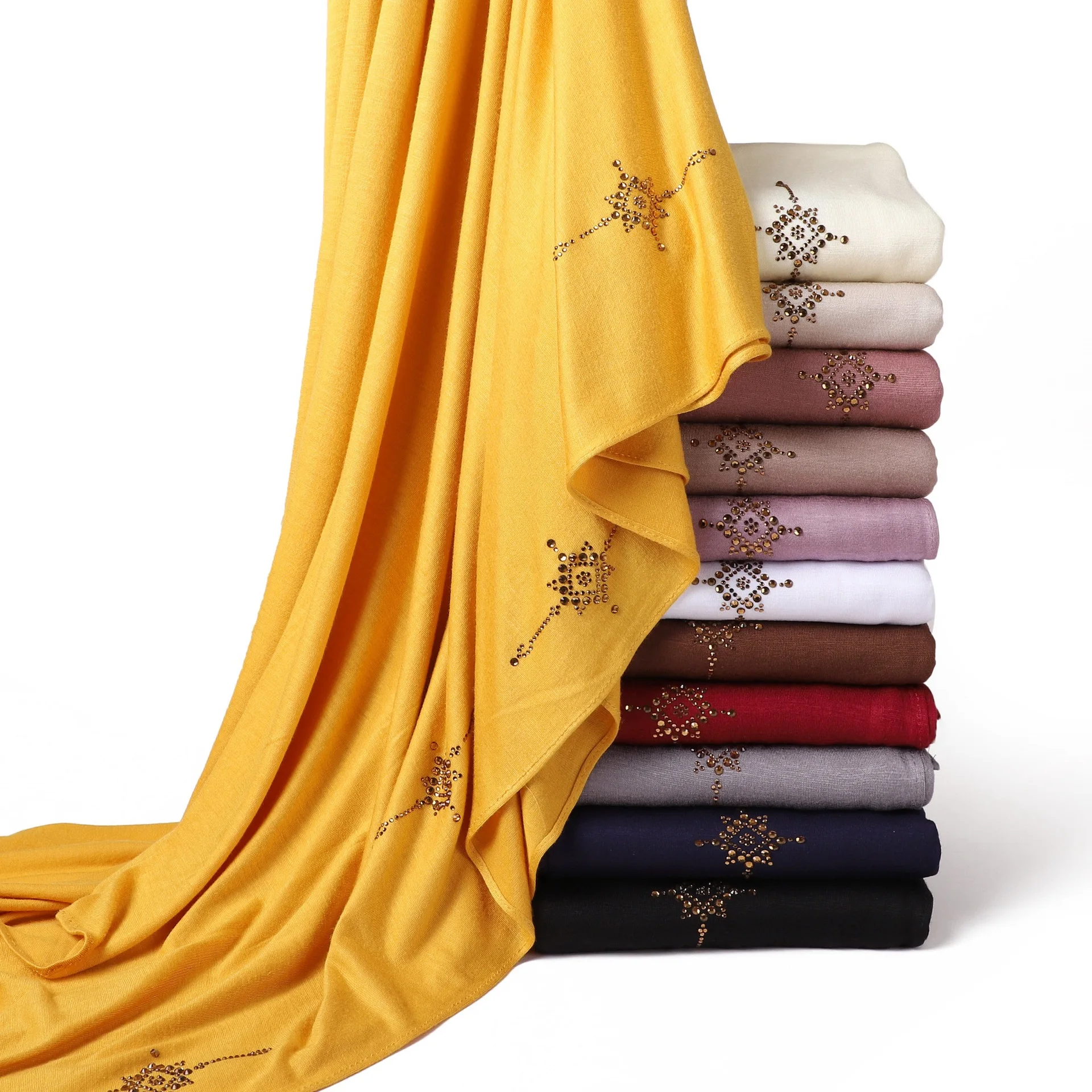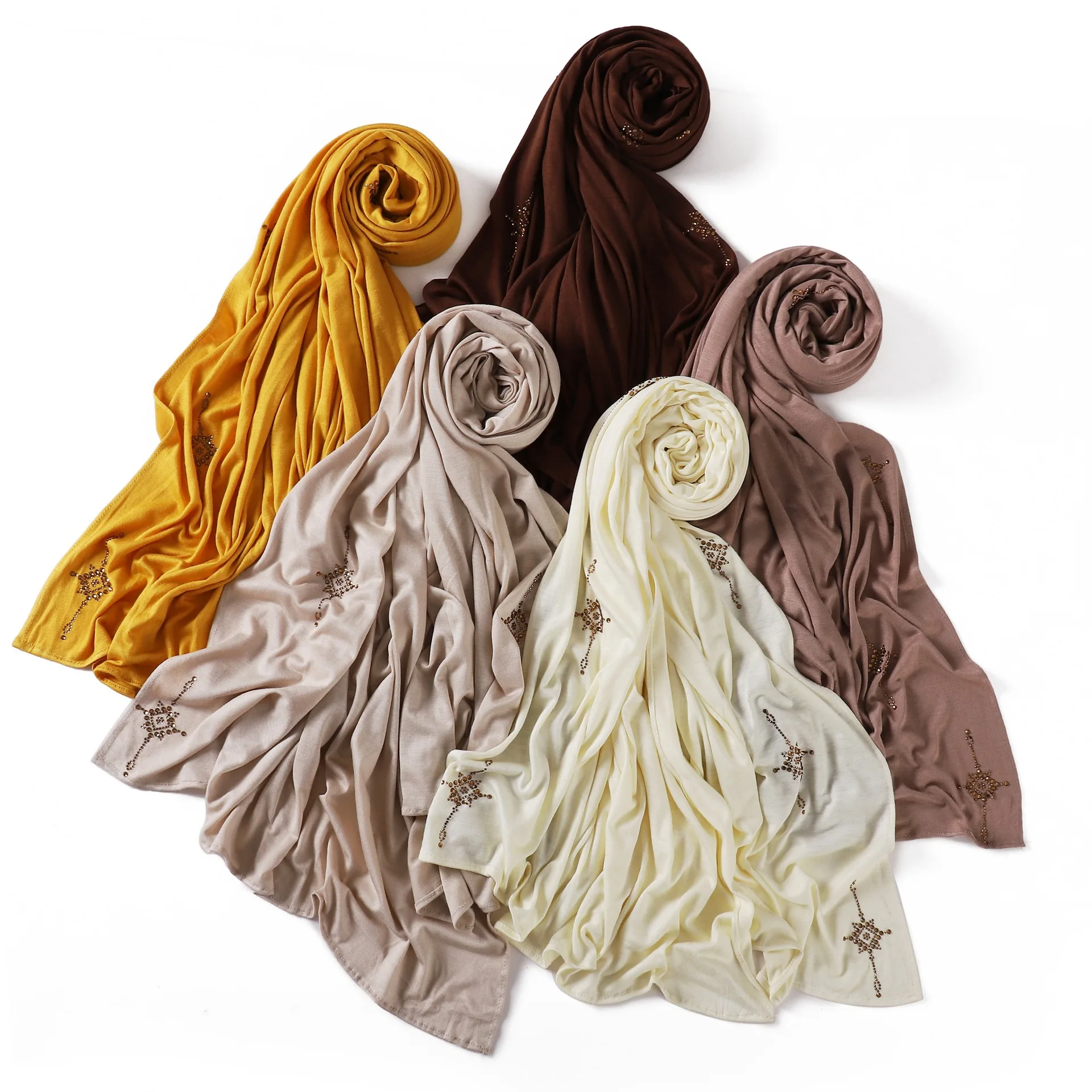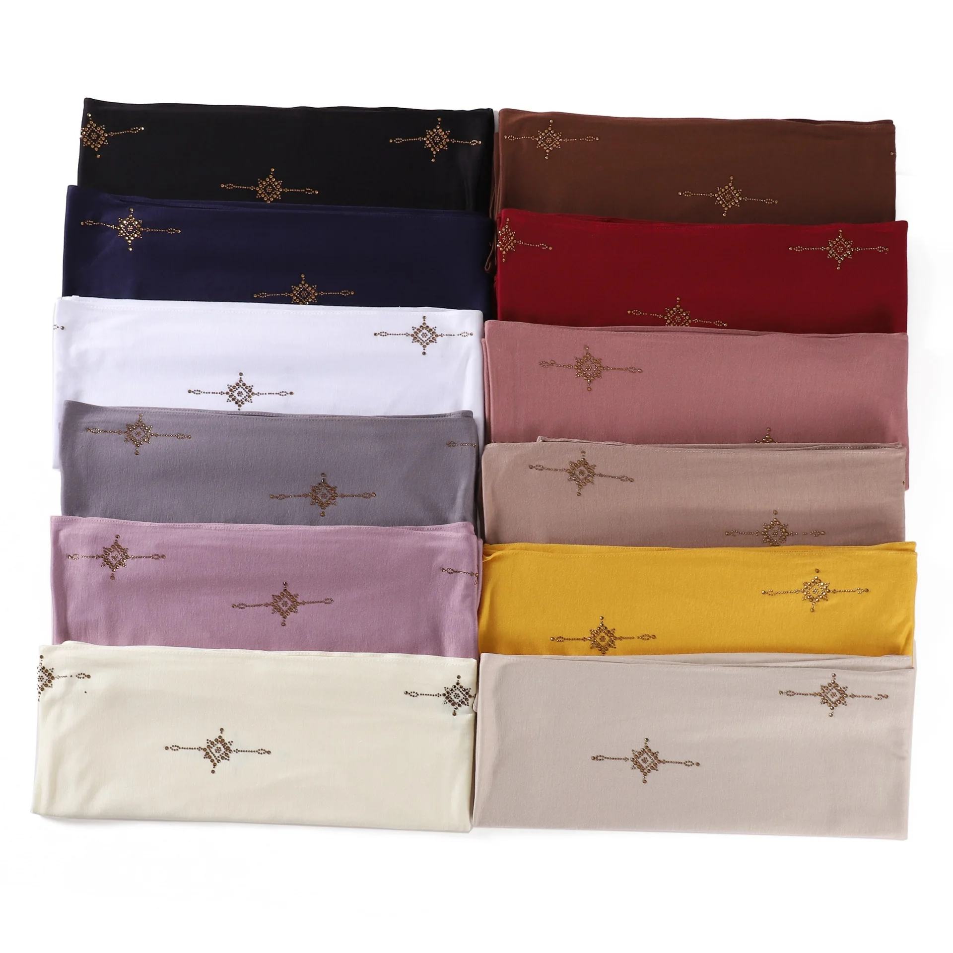 Strass Jersey Hijab pour femmes or croix diamant Double couture musulman foulard doux respirant Jersey Wrap Eid Ramadan
