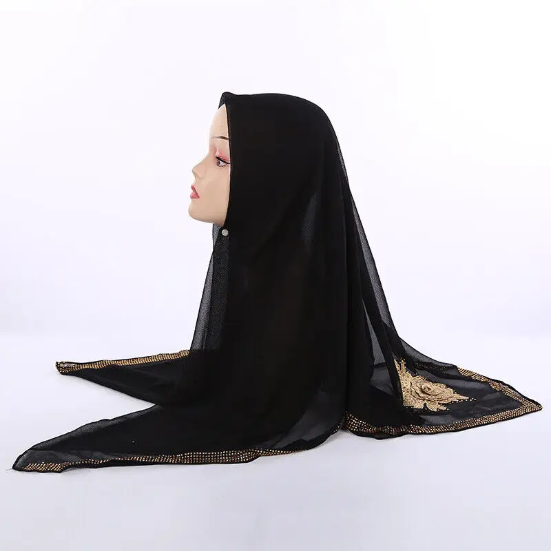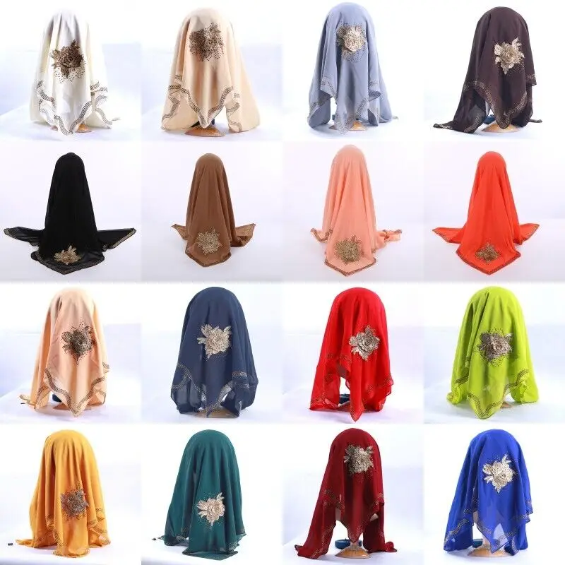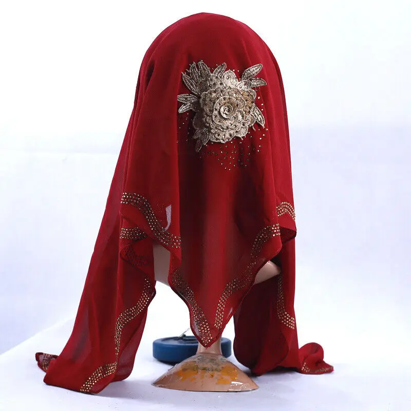 Style ethnique Bandana dubaï diamants Turban luxe islamique foulard châles Eid femmes musulmanes Hijab en mousseline de soie carré écharpe arabe |
