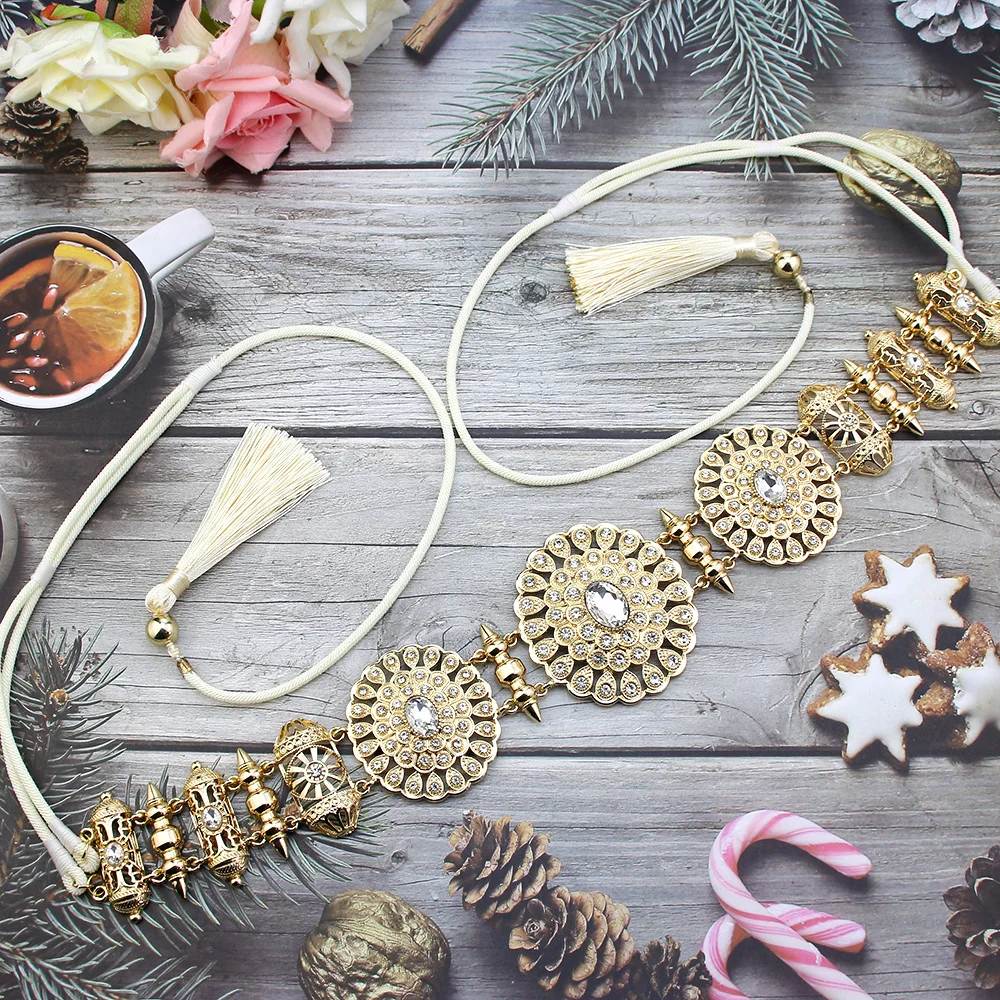 Sunspicems – ceinture en corde pour femmes, Bijoux artisanaux, couleur or, chaîne de taille ronde, Caftan, ceinture de mariée arabe, Bijoux de mariage, nouvelle collection