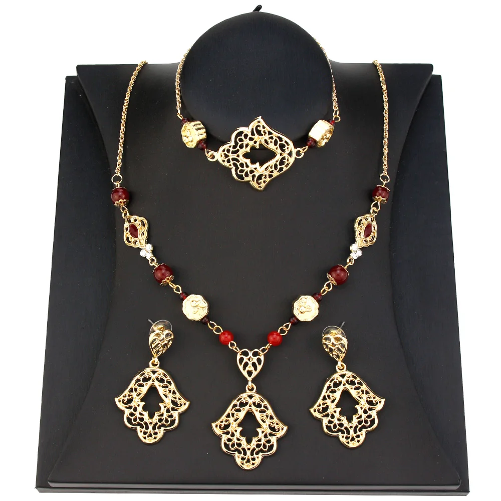 Sunspicems – ensemble de Bijoux de mariée marocaine pour femmes, boucles d'oreilles pendantes, Bracelet Chic, collier de perles, couleur or, Bijoux arabes musulmans, cadeau, nouvelle collection |