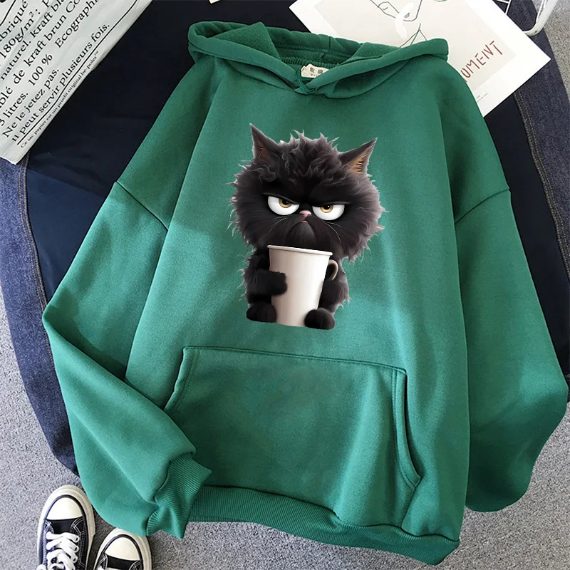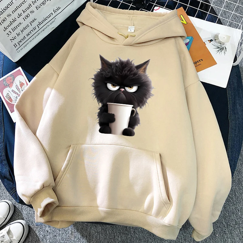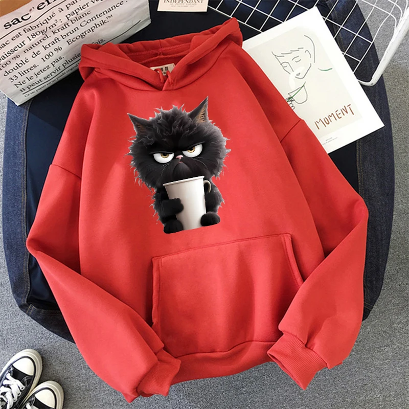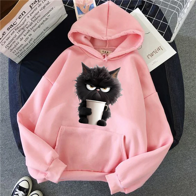 Sweat à capuche chat imprimé femmes sweat à capuche Hip Hop doux sweat décontracté polaire sweats surdimensionné femmes Streetwear sweats à capuche |
