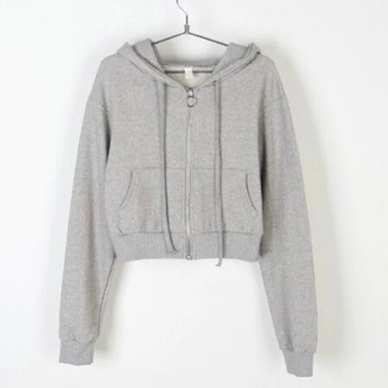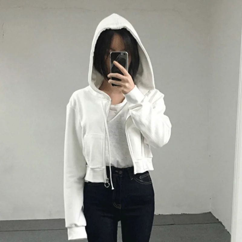 Sweat à Capuche pour Femme, Couleur Unie, Style Court, Fermeture Éclair, Slim, Harajuku, Chic, Simple, Assressenti, Fin, Manches sulf, Ulzzang, Streetwear, Nouvelle Collection |