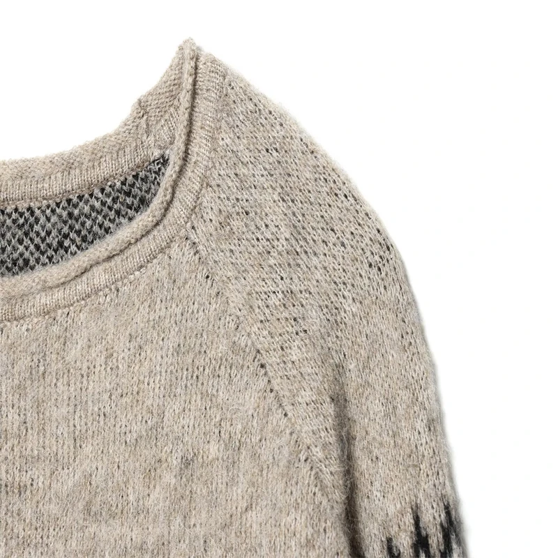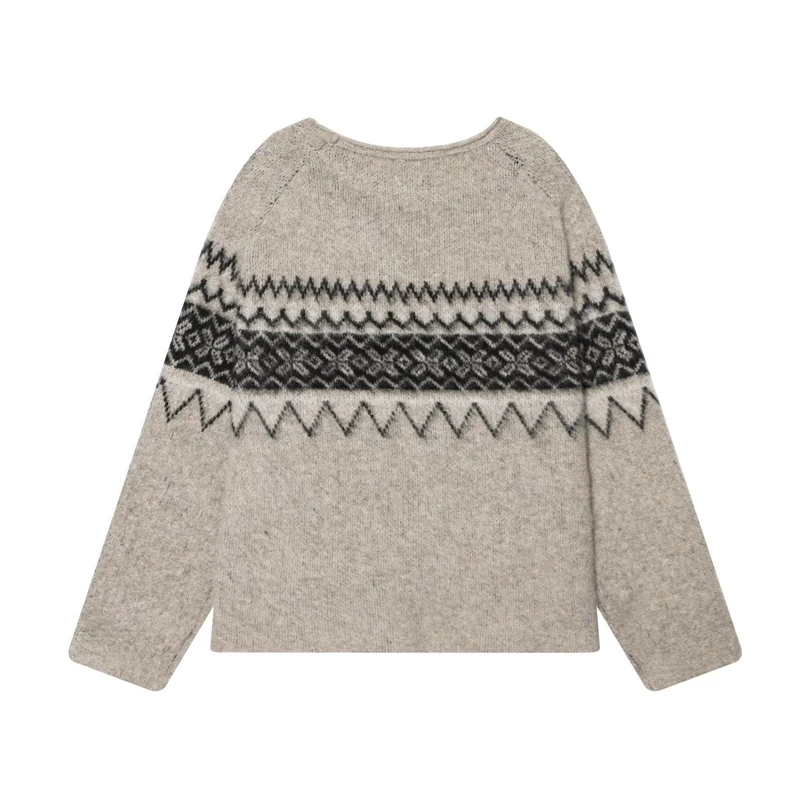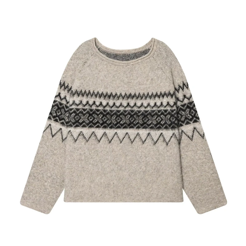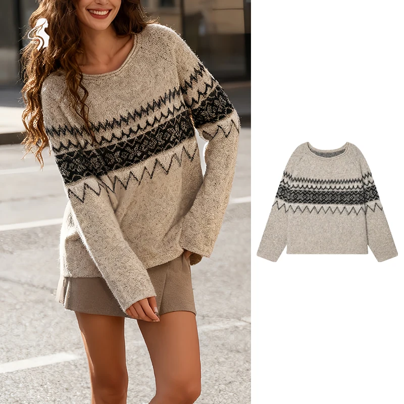 « Sweat en tricot Beige Fair Isle pour femmes, pull à motif géométrique rétro, pull coupe ample pour un Look à la mode