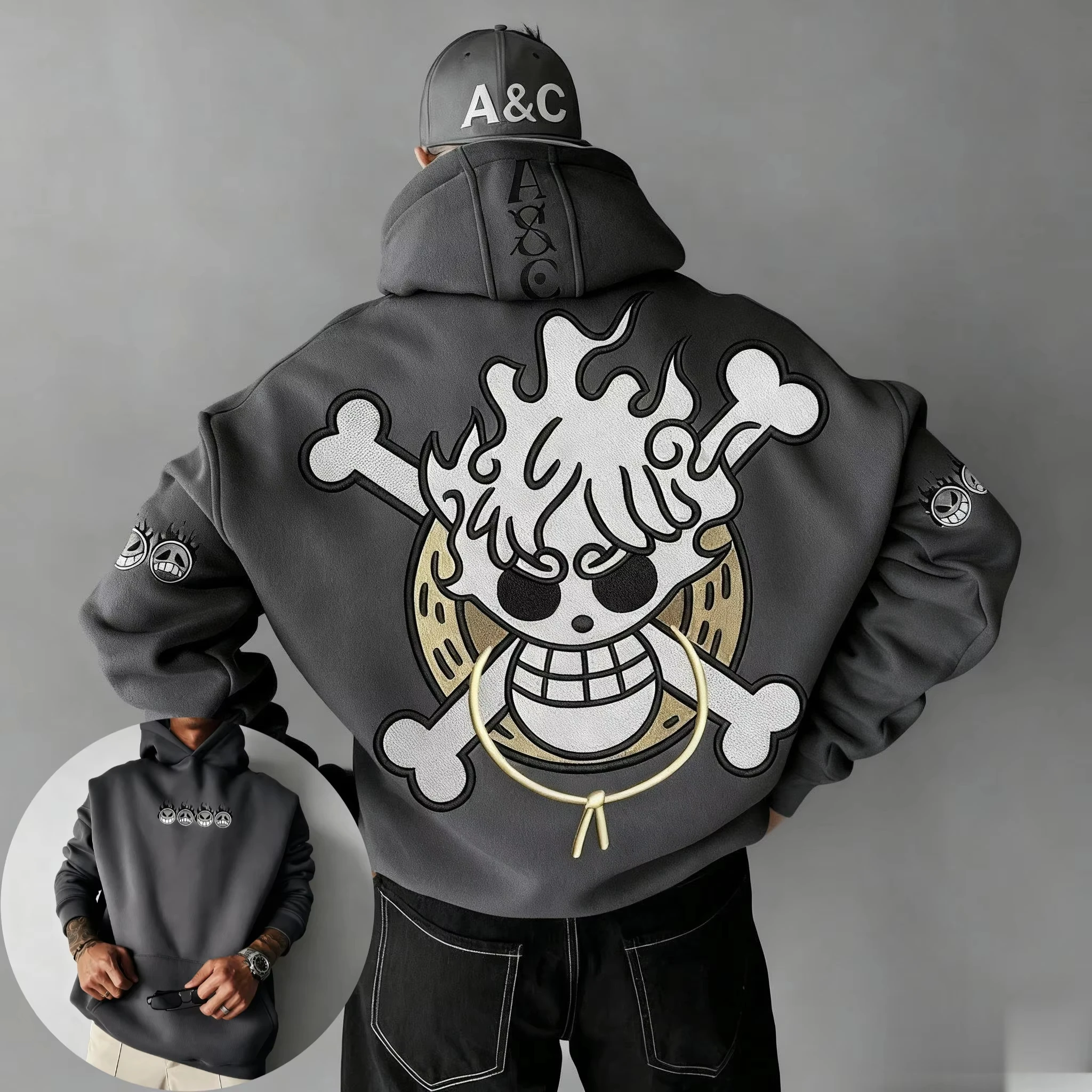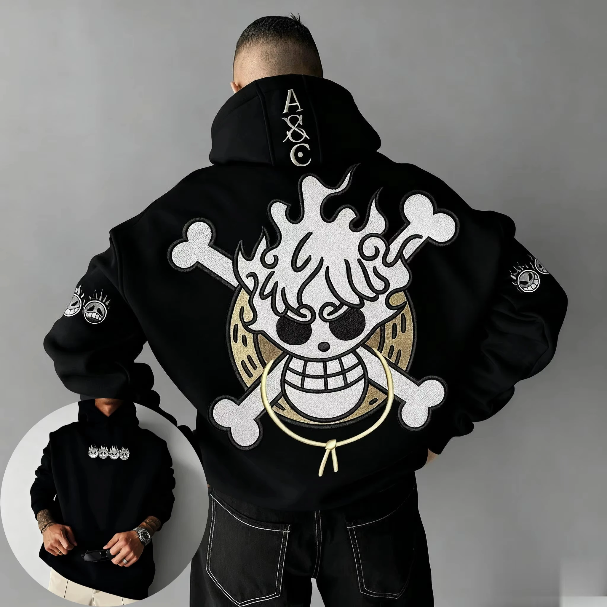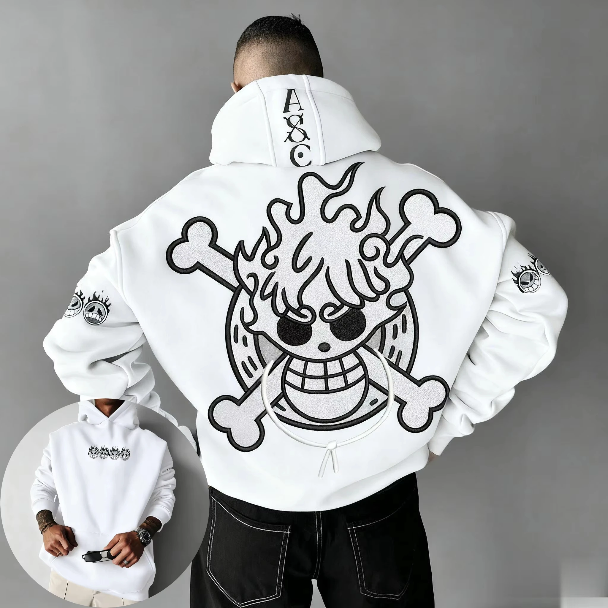 Sweat-shirt à capuche imprimé dessin animé crâne une pièce, automne hiver, nouveaux hommes et femmes, Streetwear décontracté, pull ample, hauts à manches longues