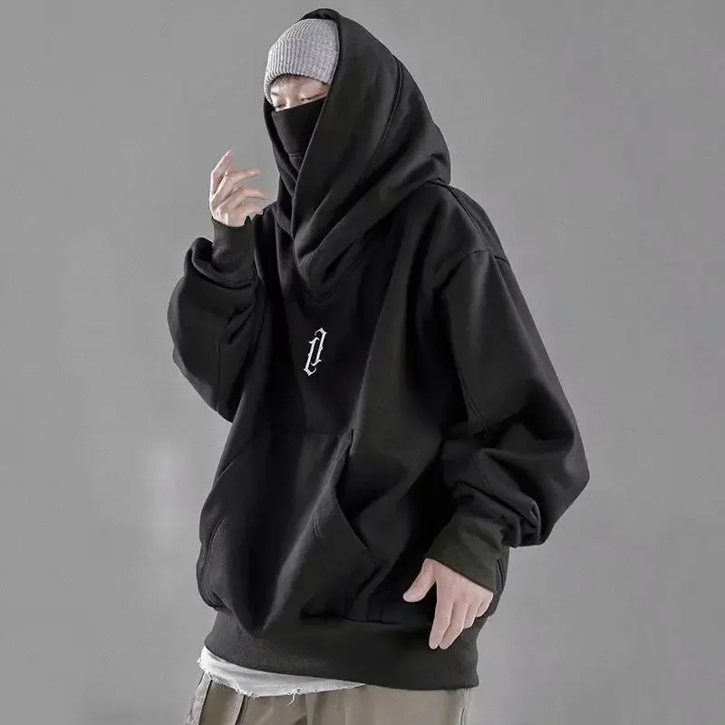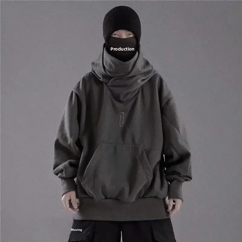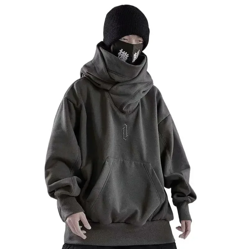 Sweat-shirt à capuche pour hommes, col haut, ample, brodé, Style de rue, Hip Hop, rétro foncé, veste de Style Hong Kong, automne hiver |