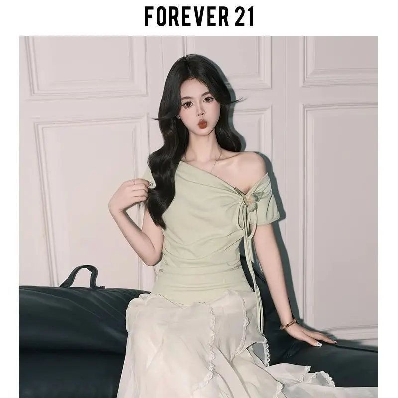 T-shirt d'été à manches courtes pour femmes, Unique, asymétrique, épaule dénudée, atmosphère polyvalente, nœud papillon, coupe cintrée à la taille, 2025 |