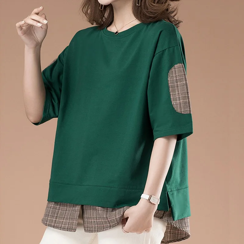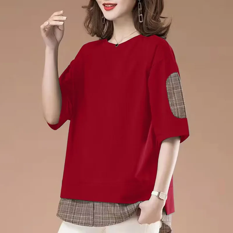T-shirt deux pièces à manches courtes pour femmes, haut ample et décontracté couvrant la chair, nouvelle collection été 2025 |