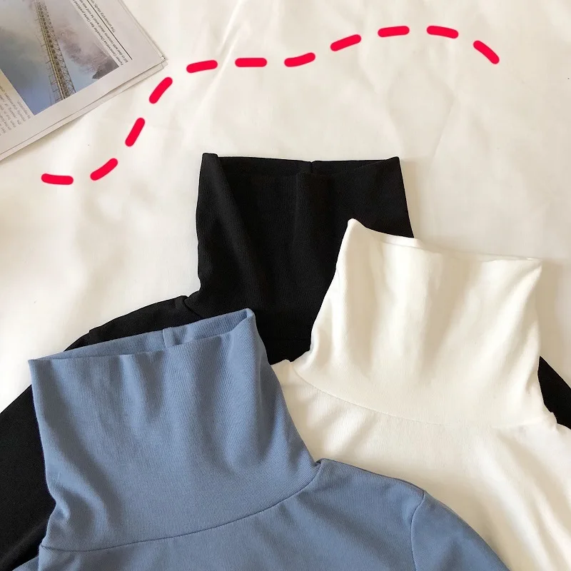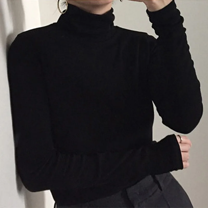 T-Shirt polyvalent à manches longues pour femmes, couleur unie, col haut, couche de Base, début du printemps, haut ajusté |