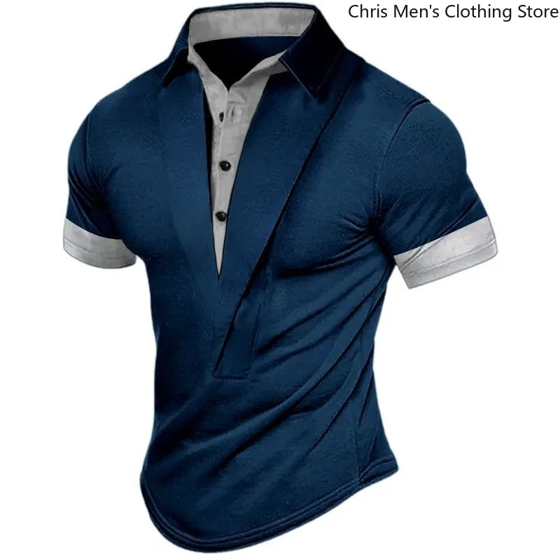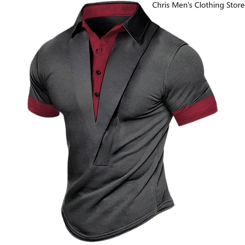 T-Shirt surdimensionné de sport respirant pour hommes, T-Shirt à manches courtes à col Henley pour hommes, Polo polyvalent et décontracté respirant |