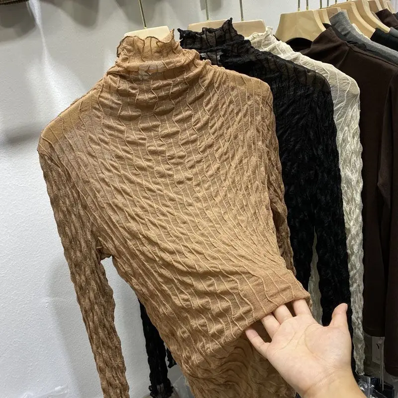 T-shirts beiges 2025 vêtements maigres marron col roulé femmes t-shirts Emo une pièce femmes hauts de luxe de haute qualité tendance t-shirts |
