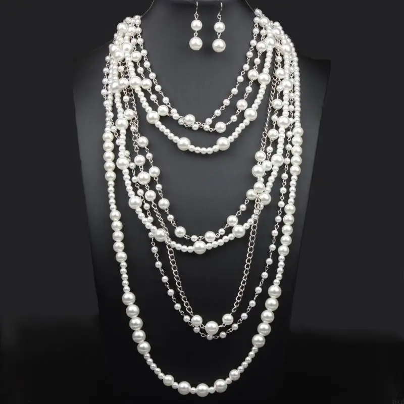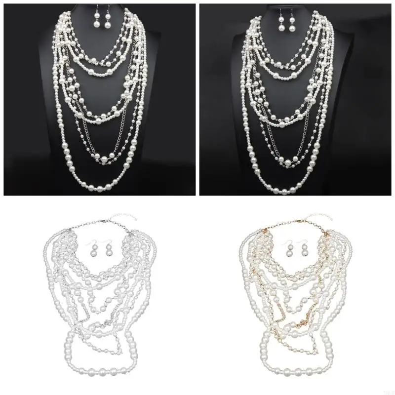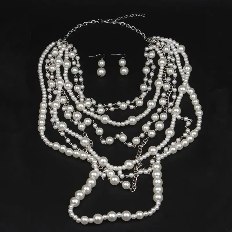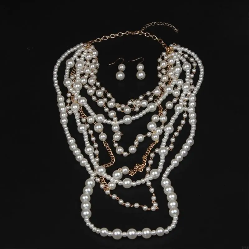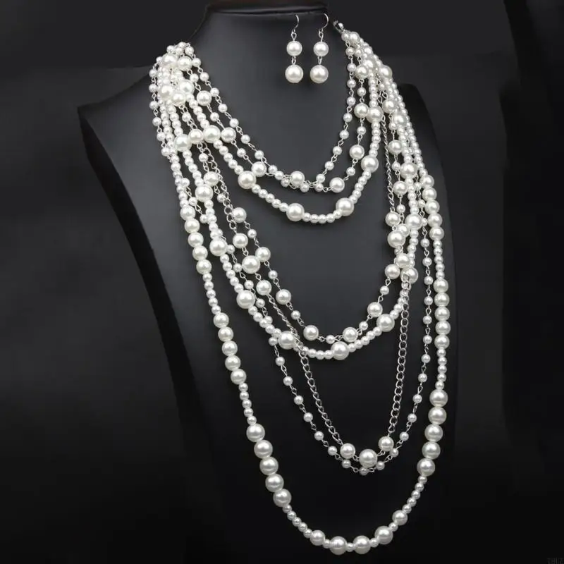 T8UE – collier perles au design exagéré moderne, avec boucles d’oreilles élégantes, tenues élégantes