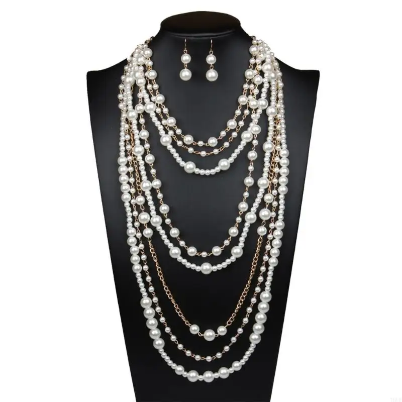 T8UE – collier perles au design exagéré moderne, avec boucles d'oreilles élégantes, tenues élégantes |