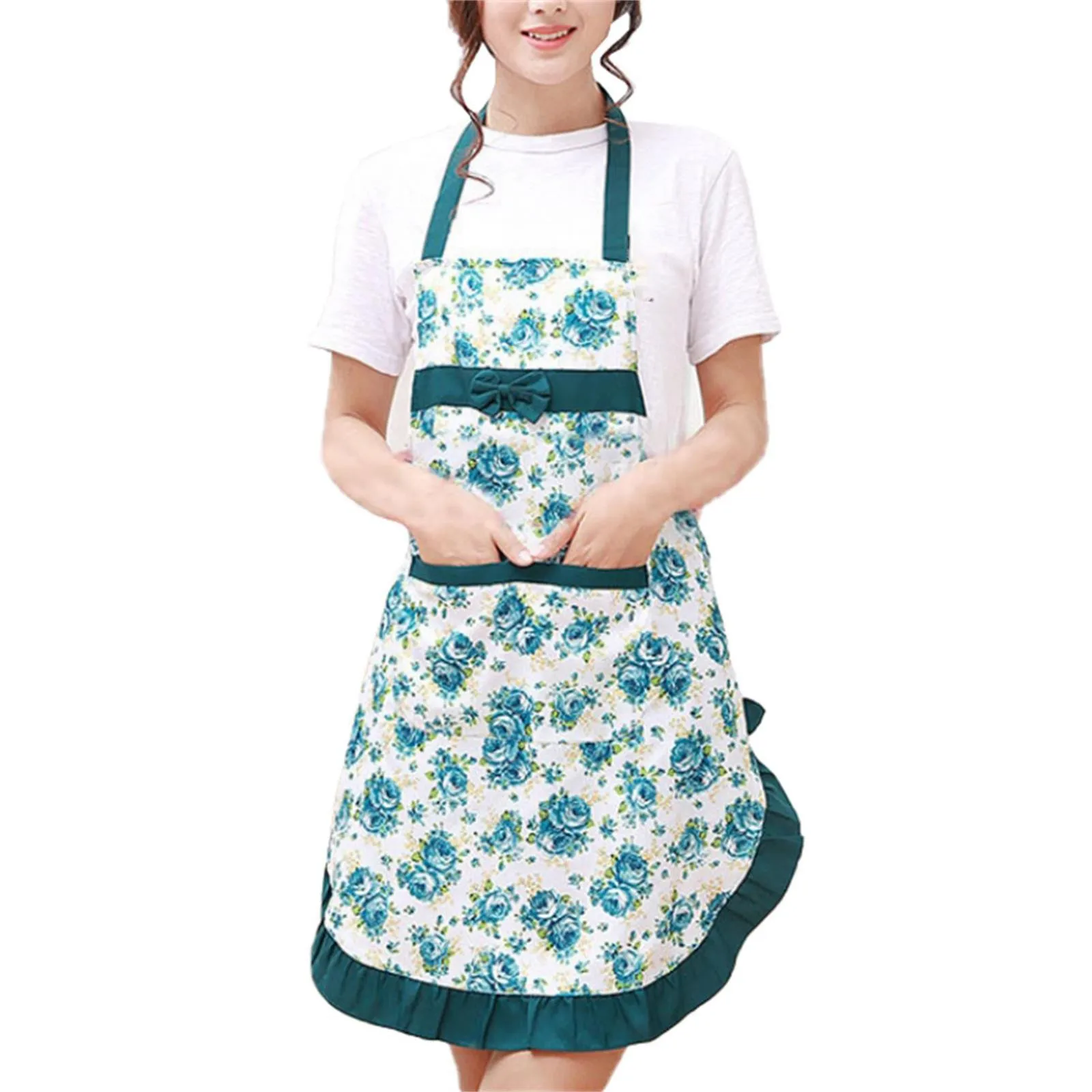 Tablier de Cuisine en Toile de Coton à Motif Floral pour Femme, Étanche à l’Huile, avec Poches et Ceinture de Taille Réglable