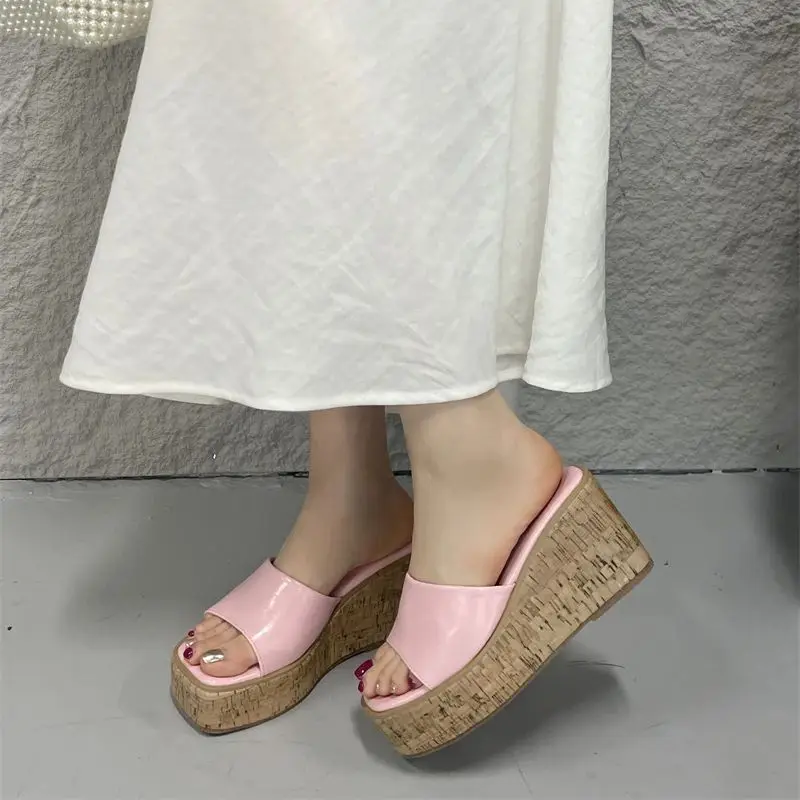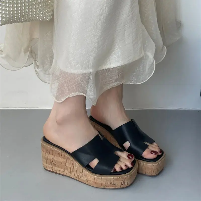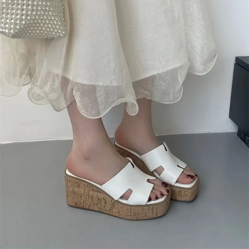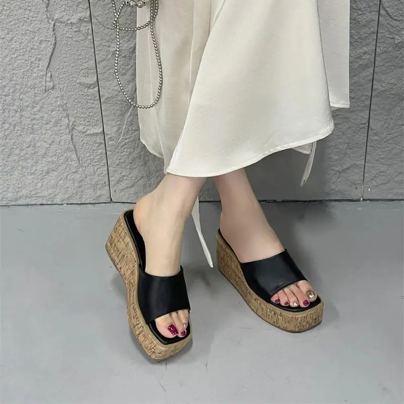 Talons noirs pantoufles été bloc chaussures compensées Sandales blanches décontracté Femme plate-forme talons pantoufles marron Sandales Femmes taille 43