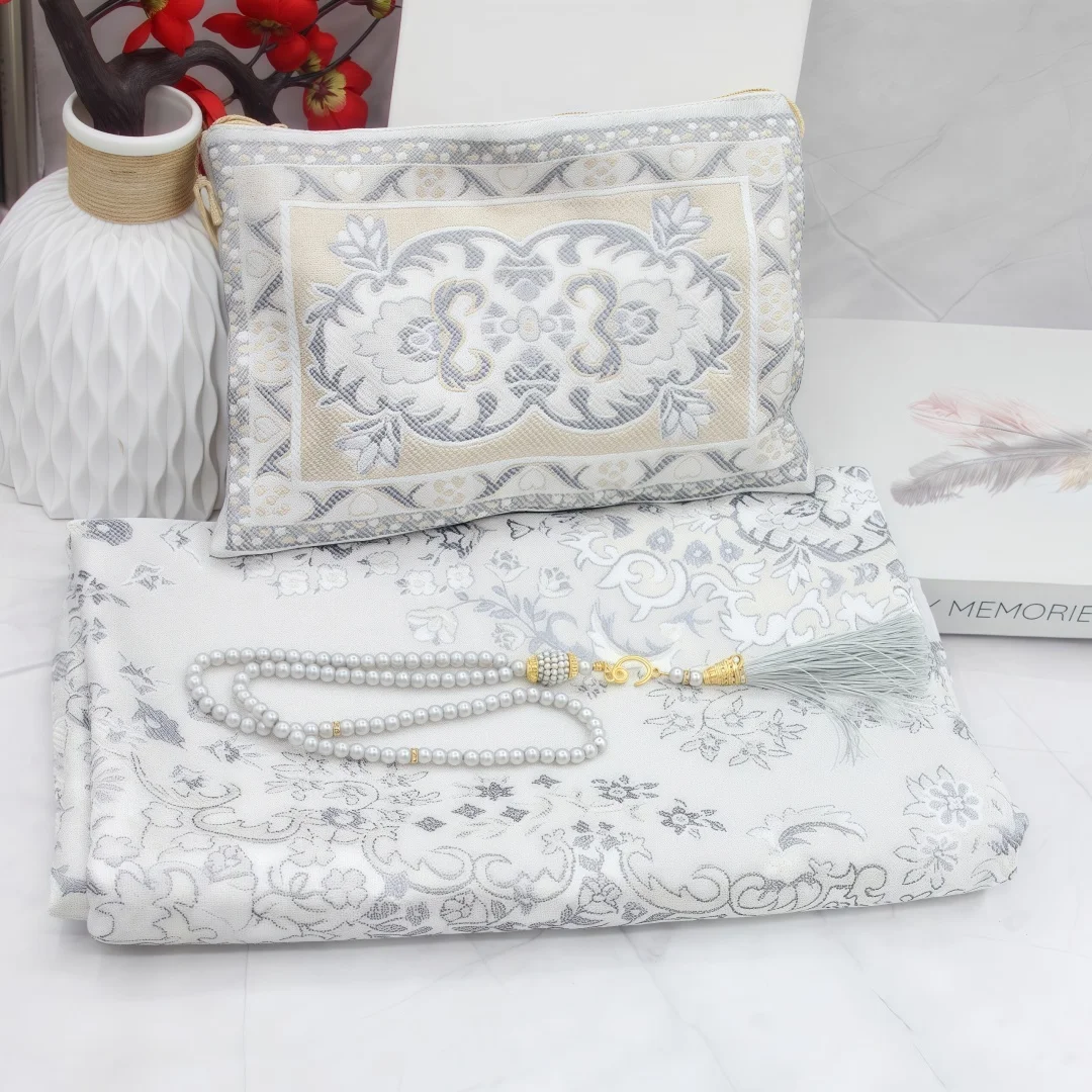 Tapis de prière de voyage pliable, tapis de prière musulman, mosquée, cadeau islamique idéal pour Hajj Umrah Ramadan Eid, tissu en taffetas |