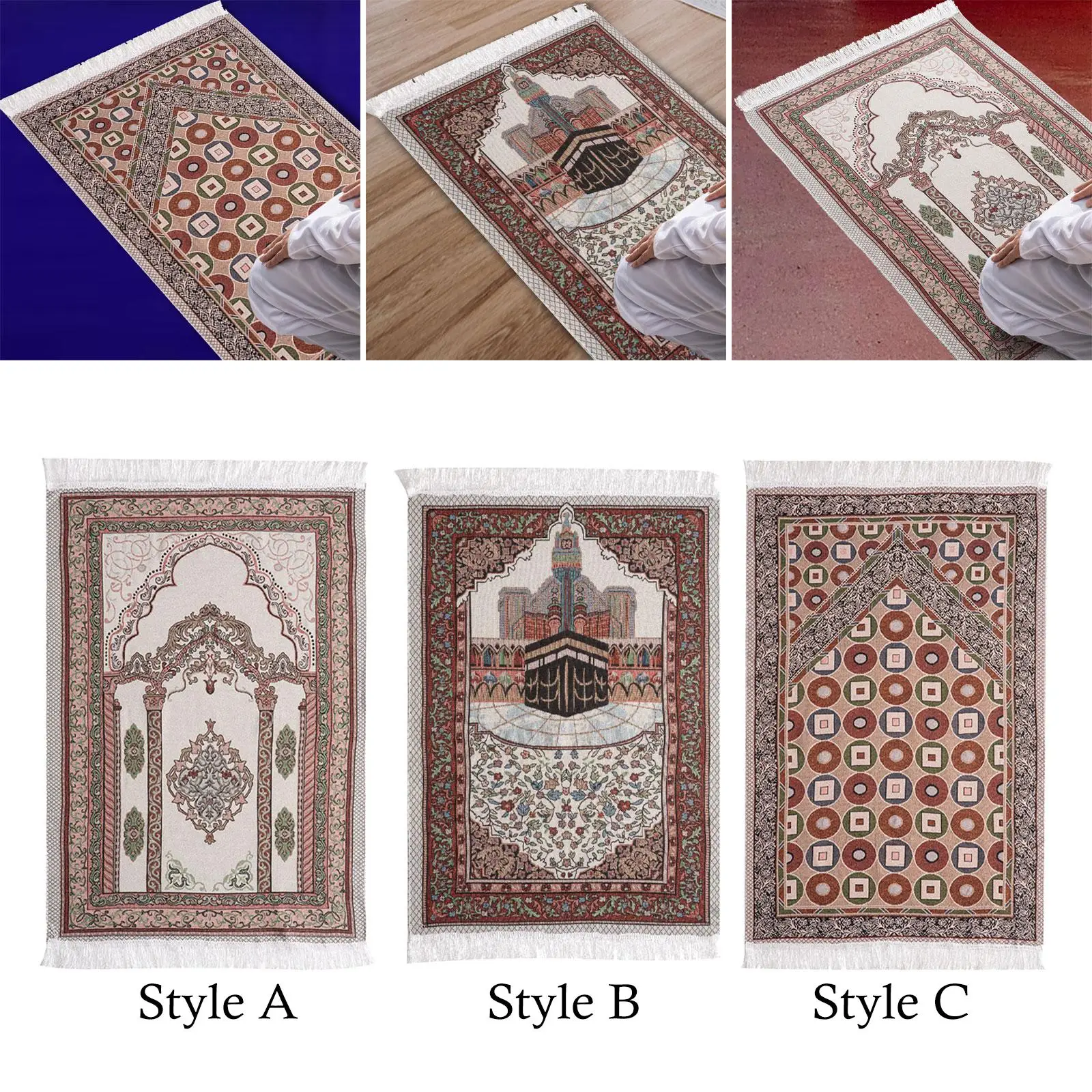 MainKey4: Portable Traditional Prayer Carpet Tassel Decor