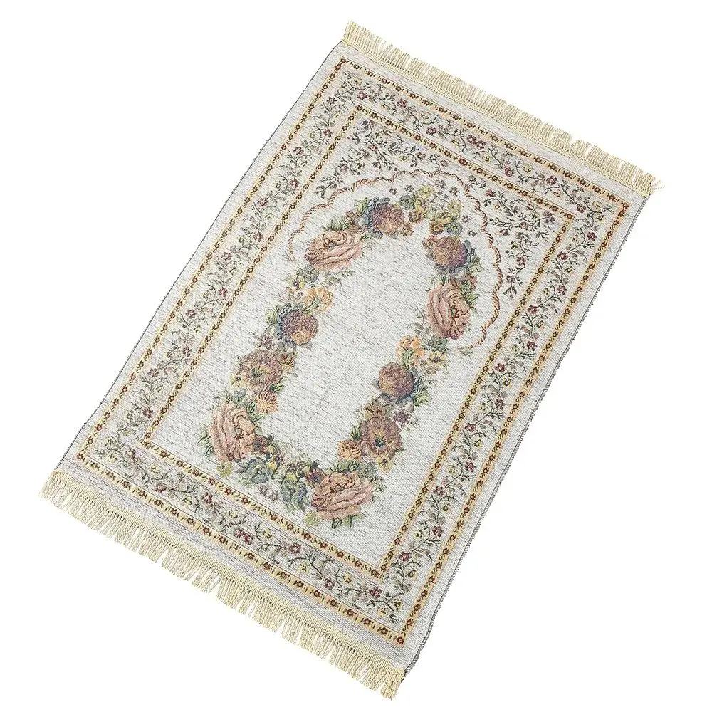 Tapis de prière musulman tapis de prière musulman Floral couverture de prière Portable glands coton Chenille tapis de prière cadeau du Ramadan pour hommes femmes