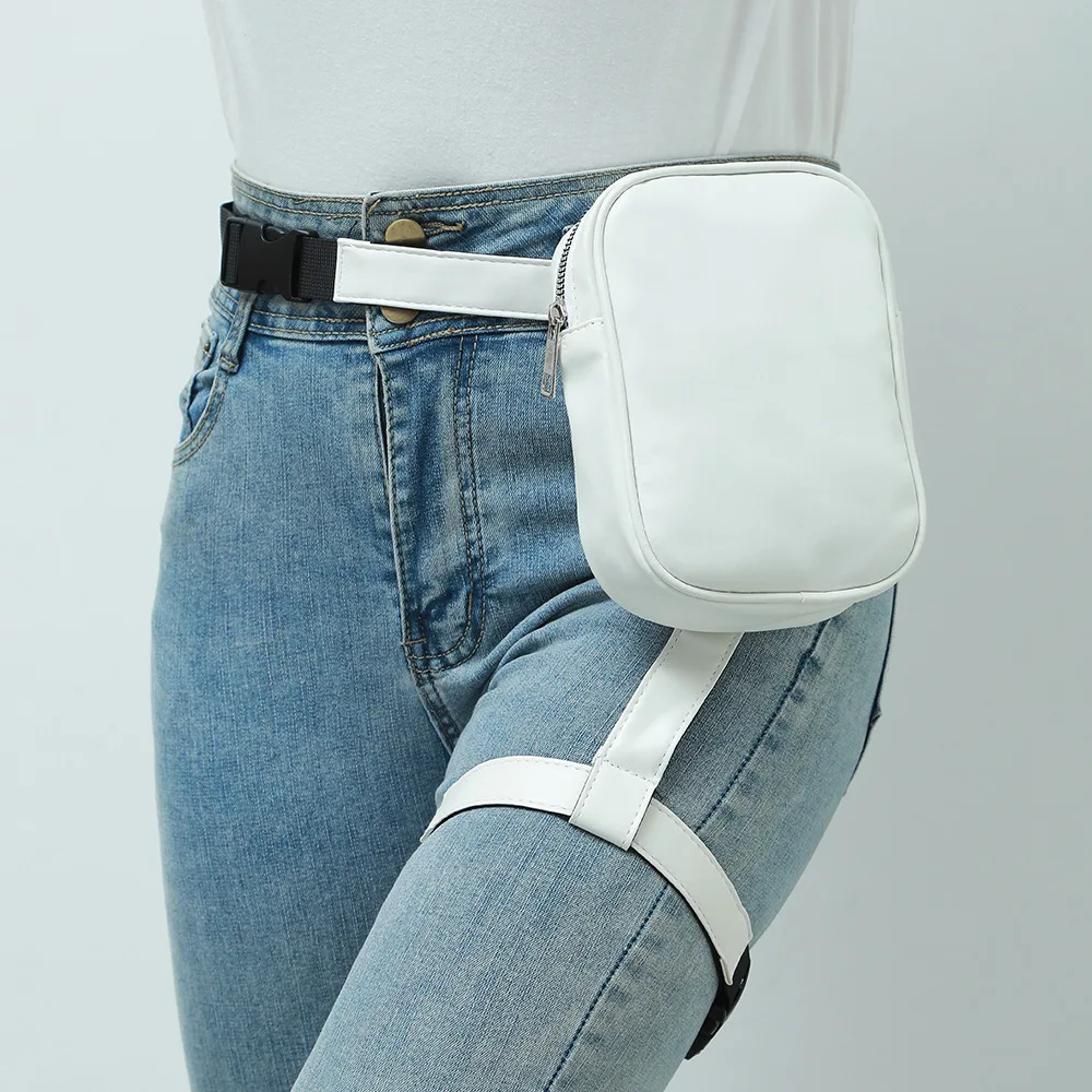 Tendance élégant noir femmes taille jambe ceinture en cuir Cool fille sac Fanny Pack pour randonnée en plein air moto Сумка Muж...... jambe sac |